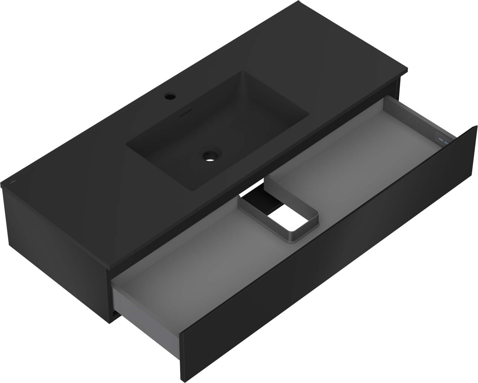 Mexen Orio Badezimmer-Unterschrank 120 cm mit Waschbecken Otis, 1 Schublade, schwarz matt - 91A10-12023-1-BF71-W18M71