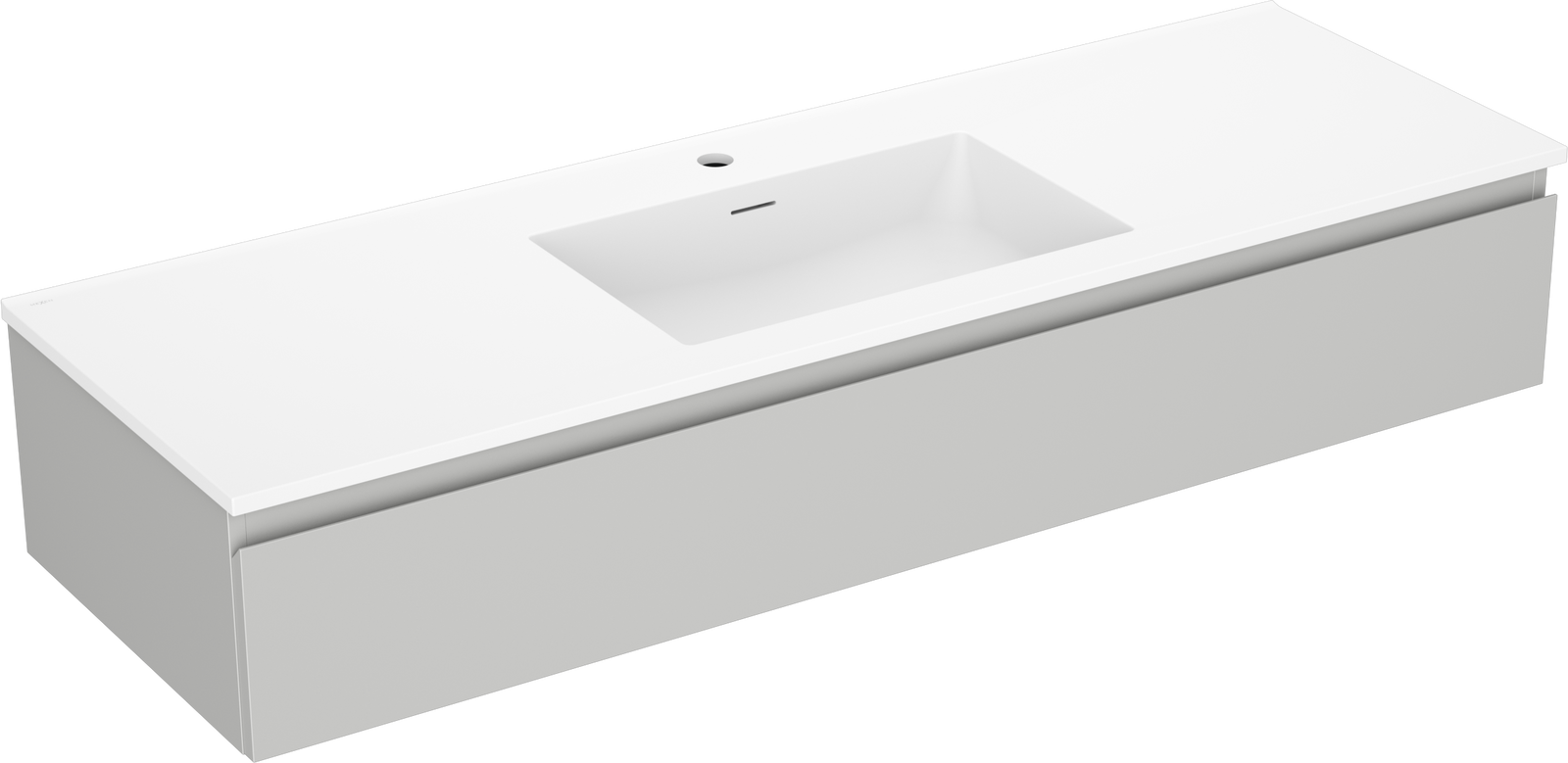 Mexen Orio Badezimmerschrank 140 cm mit Waschbecken Otis, 1 Schublade, grau matt/weiß matt - 91A10-14023-1-BF62-W18M01
