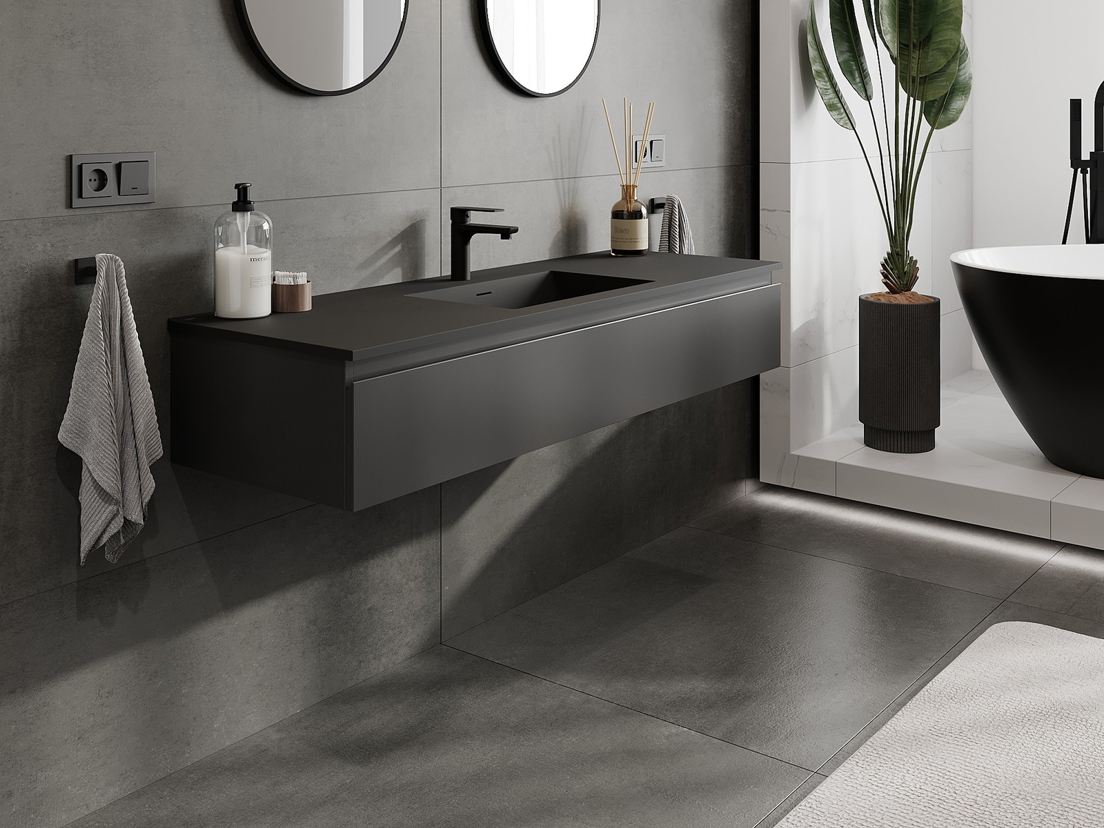 Mexen Orio Badezimmerschrank 140 cm mit Waschbecken Otis, 1 Schublade, schwarz matt - 91A10-14023-1-BF71-W18M71