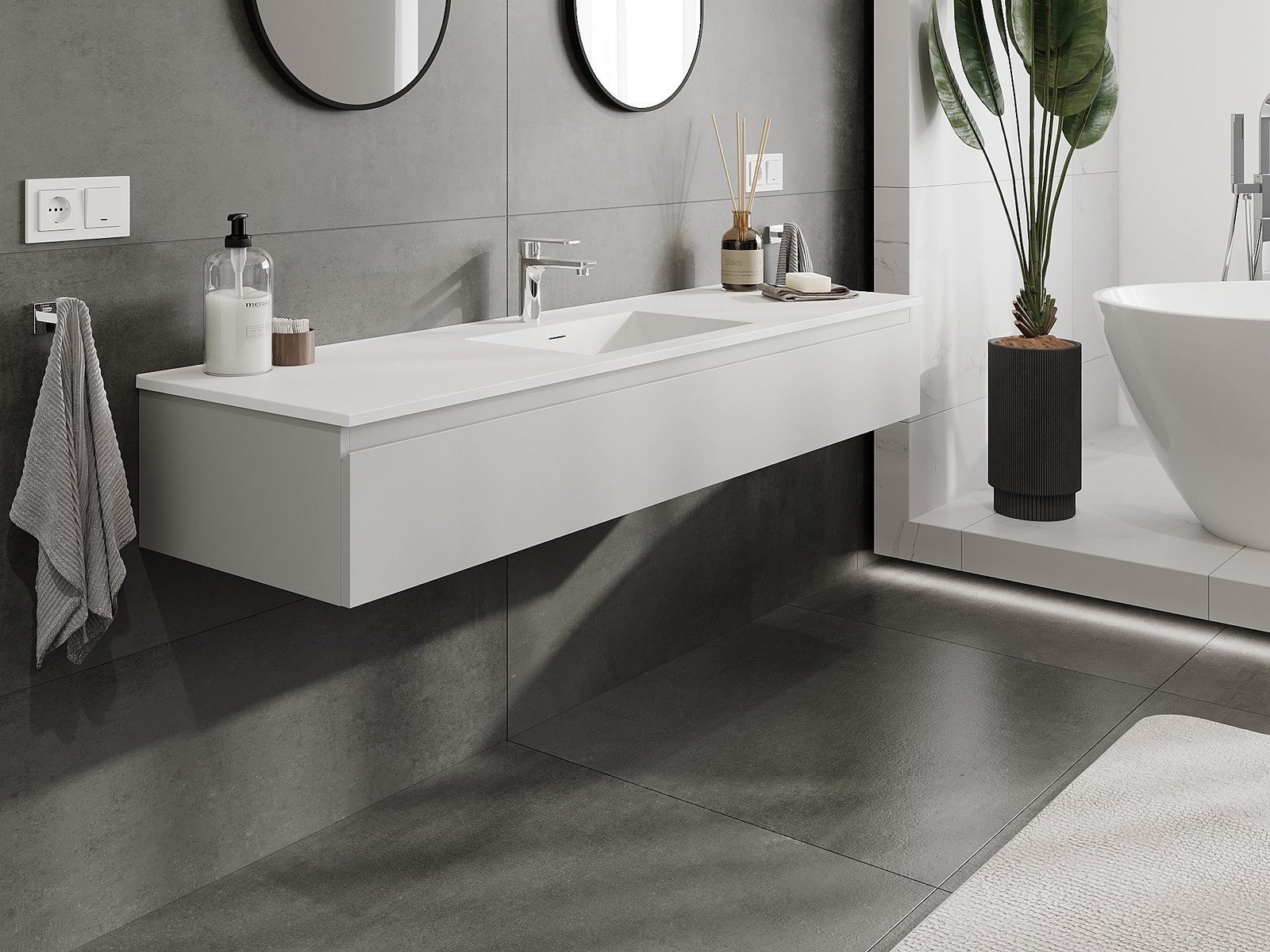 Mexen Orio Badezimmermöbel 160 cm mit Waschbecken Otis, 1 Schublade, Grau matt/Weiß matt - 91A10-16023-1-BF62-W18M01