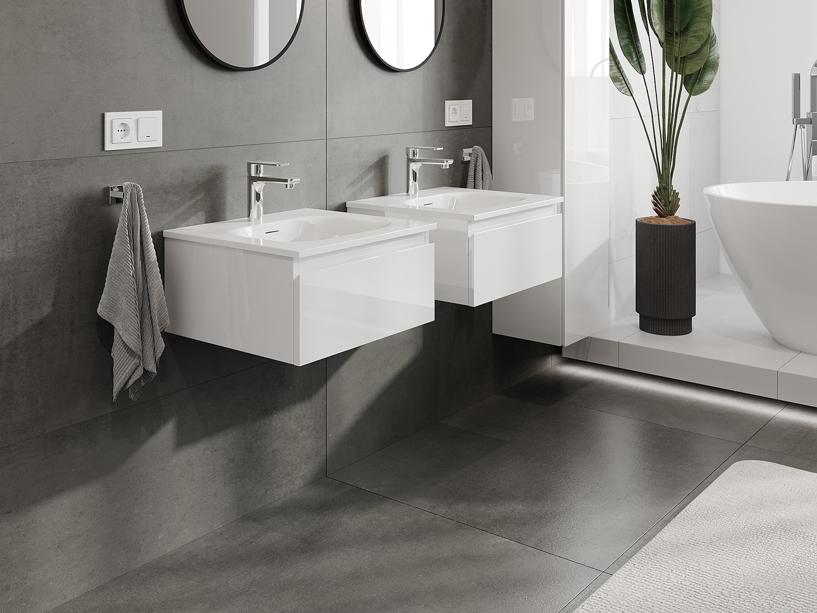 Unsere modularen Badezimmermöbel können in verschiedenen Farbkonfigurationen miteinander kombiniert werden, wodurch eine vollständige Personalisierung ermöglicht wird. Man kann sowohl das Aussehen als auch die Funktionen der einzelnen Elemente auswählen, was es erlaubt, die Möbel an eigene stilistische und funktionale Vorlieben anzupassen.