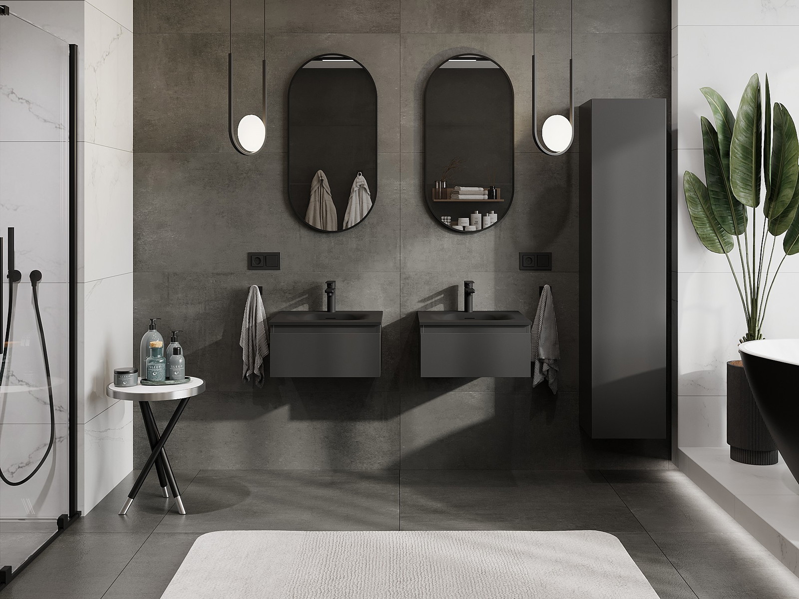 Unsere modularen Badezimmermöbel können in verschiedenen Farbkonfigurationen miteinander kombiniert werden, wodurch eine vollständige Personalisierung ermöglicht wird. Man kann sowohl das Aussehen als auch die Funktionen der einzelnen Elemente auswählen, was es erlaubt, die Möbel an eigene stilistische und funktionale Vorlieben anzupassen.