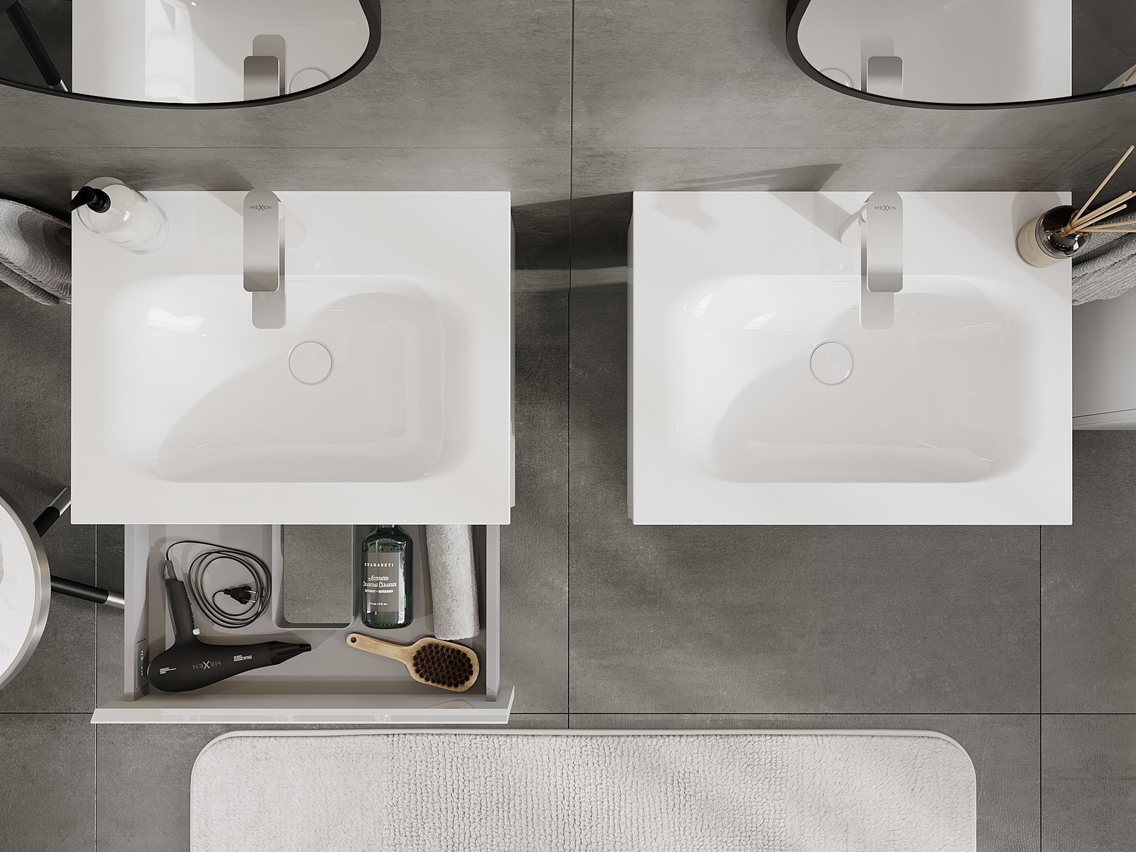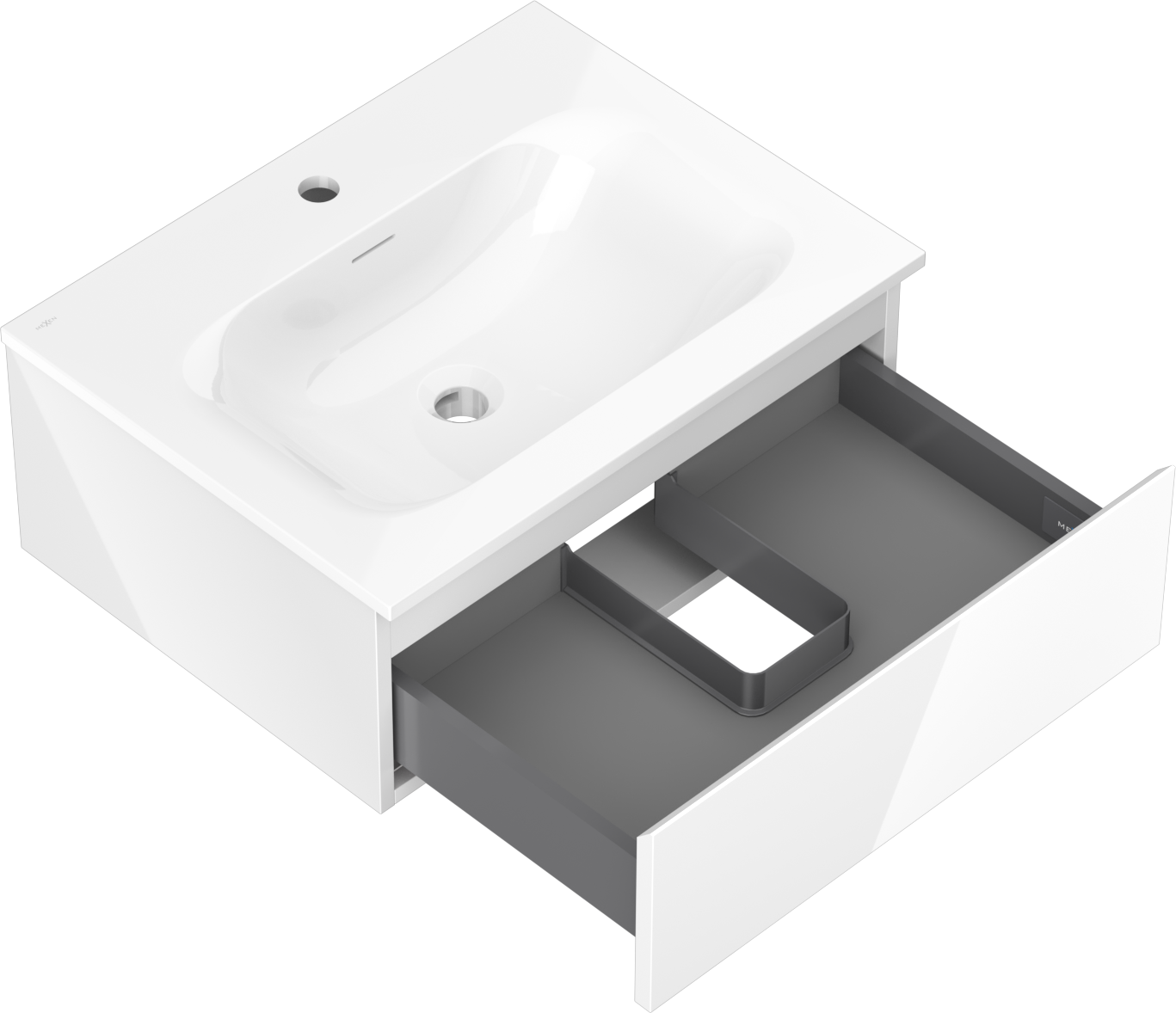 Mexen Orio Badezimmerschrank 60 cm mit Waschbecken Vela, 1 Schublade, weiß glänzend - 91A10-06023-1-BF00-W23M00