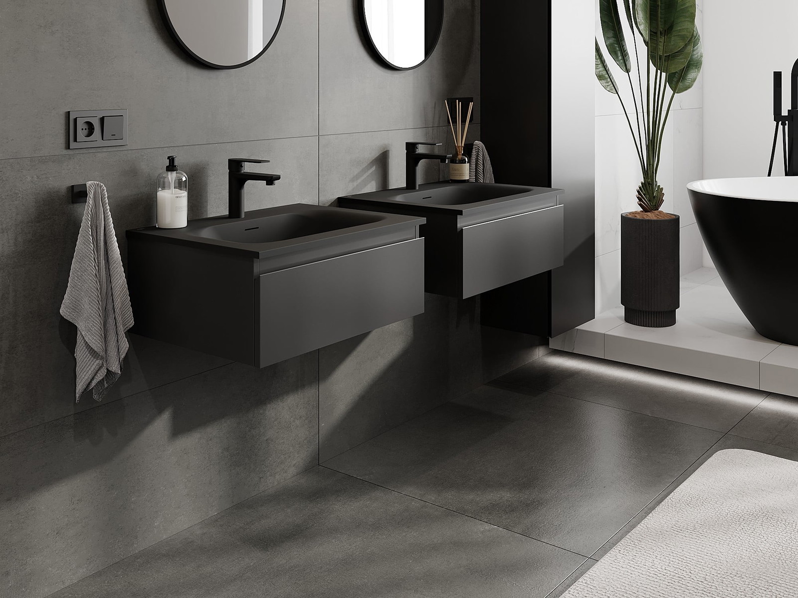 Unsere modularen Badezimmermöbel können in verschiedenen Farbkonfigurationen miteinander kombiniert werden, wodurch eine vollständige Personalisierung ermöglicht wird. Man kann sowohl das Aussehen als auch die Funktionen der einzelnen Elemente auswählen, was es erlaubt, die Möbel an eigene stilistische und funktionale Vorlieben anzupassen.
