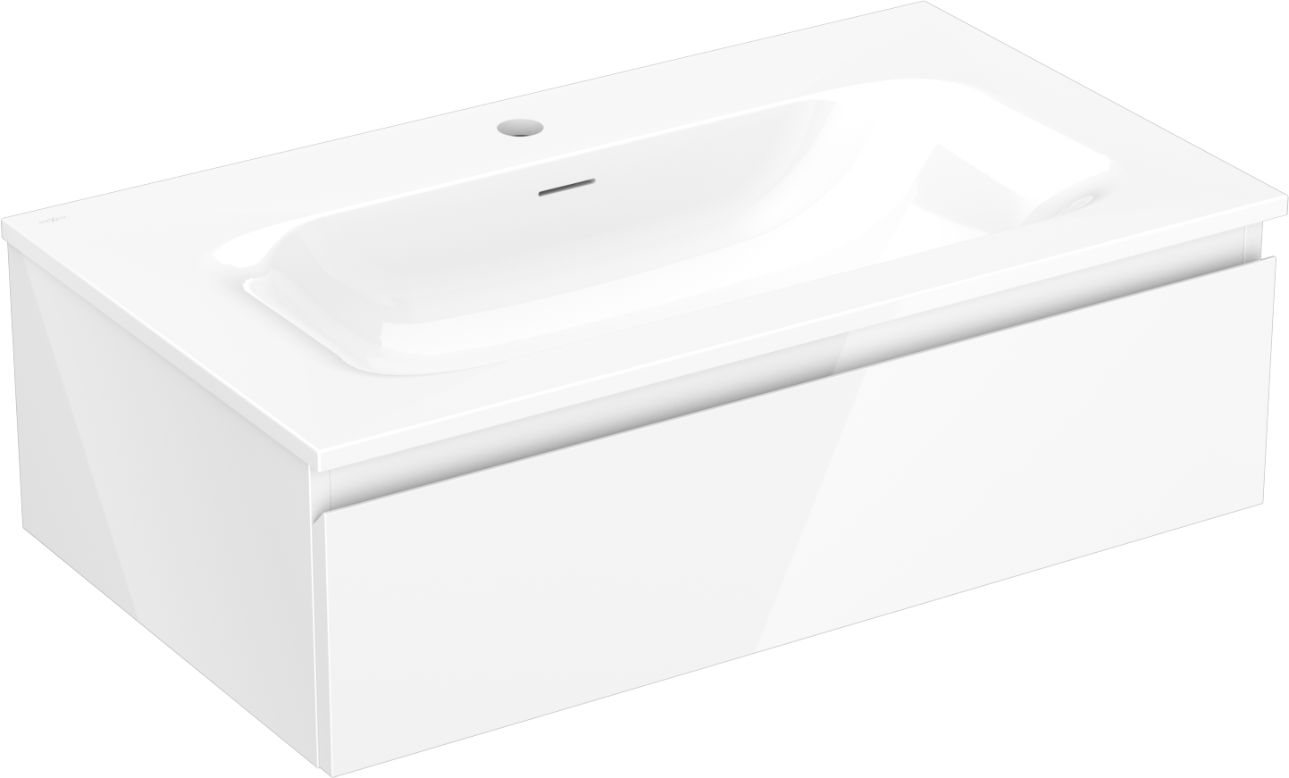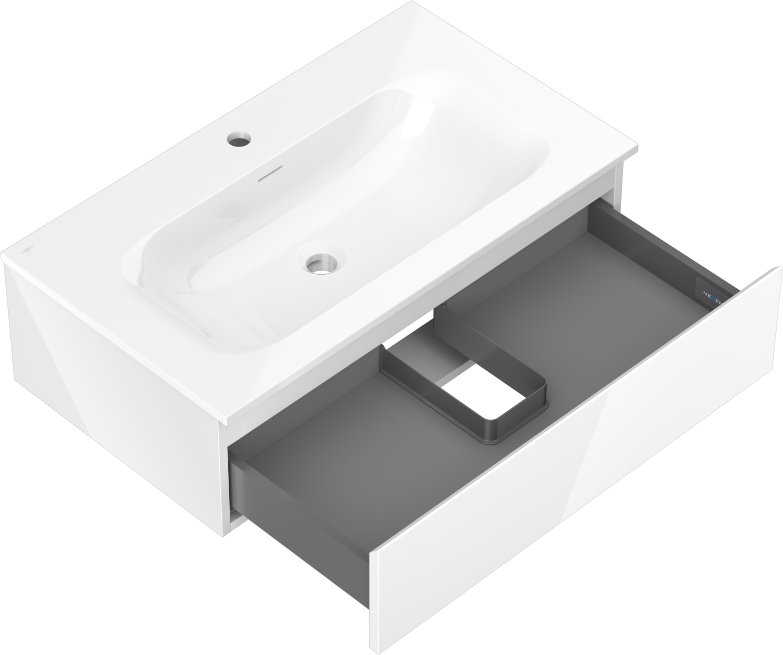 Mexen Orio Badezimmerschrank 80 cm mit Waschbecken Vela, 1 Schublade, weiß glänzend - 91A10-08023-1-BF00-W23M00