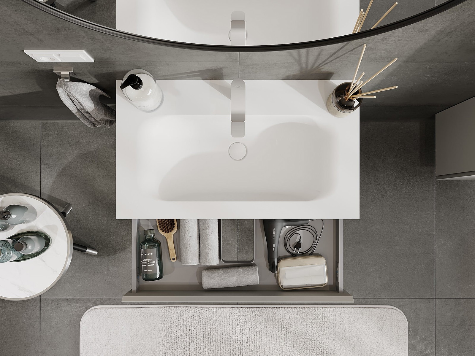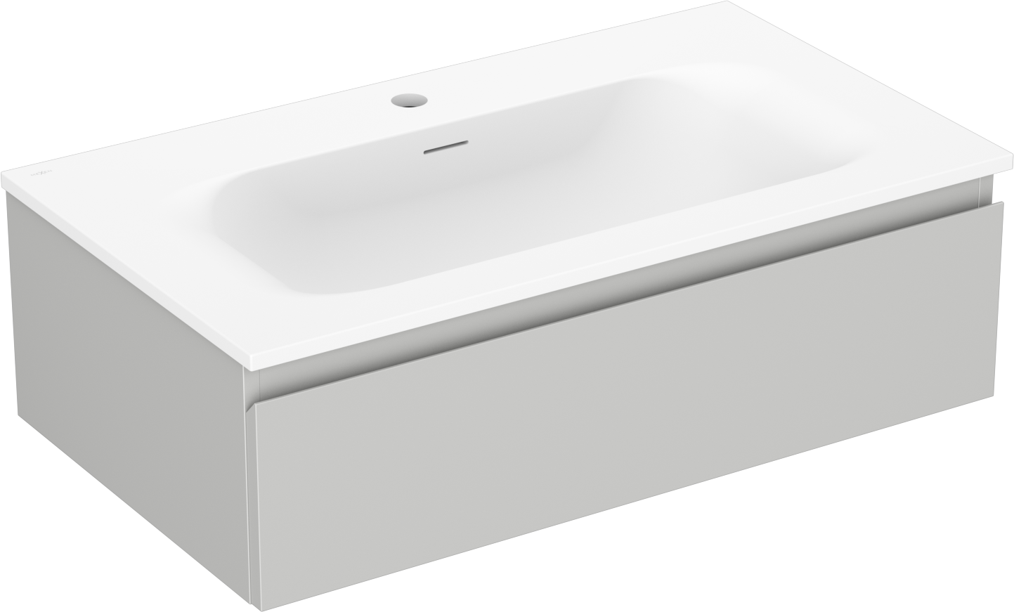 Mexen Orio Badezimmerschrank 80 cm mit Waschbecken Vela, 1 Schublade, grau matt/weiß matt - 91A10-08023-1-BF62-W23M01