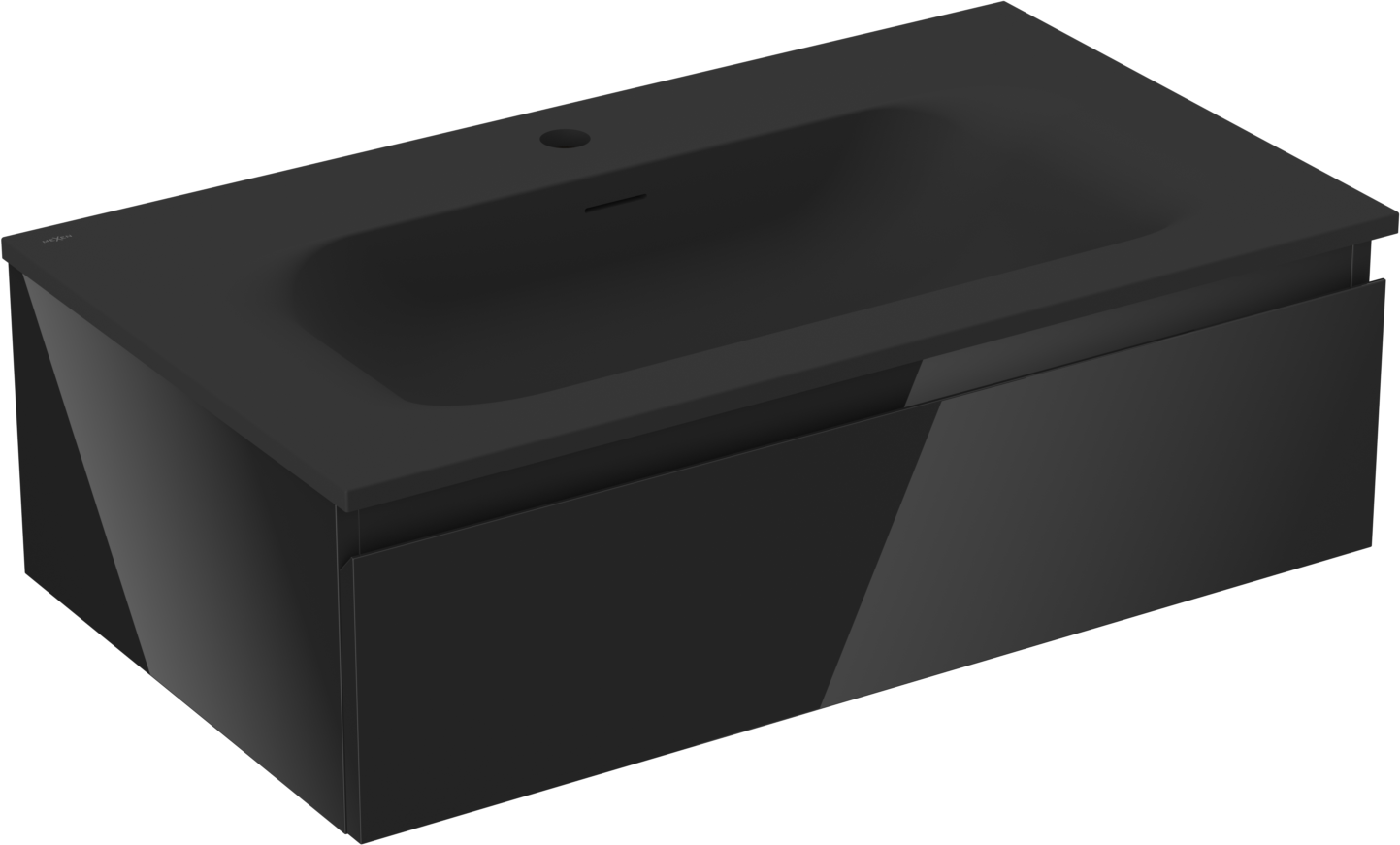 Mexen Orio Badezimmerschrank 80 cm mit Waschbecken Vela, 1 Schublade, schwarz glänzend/schwarz matt - 91A10-08023-1-BF70-W23M71