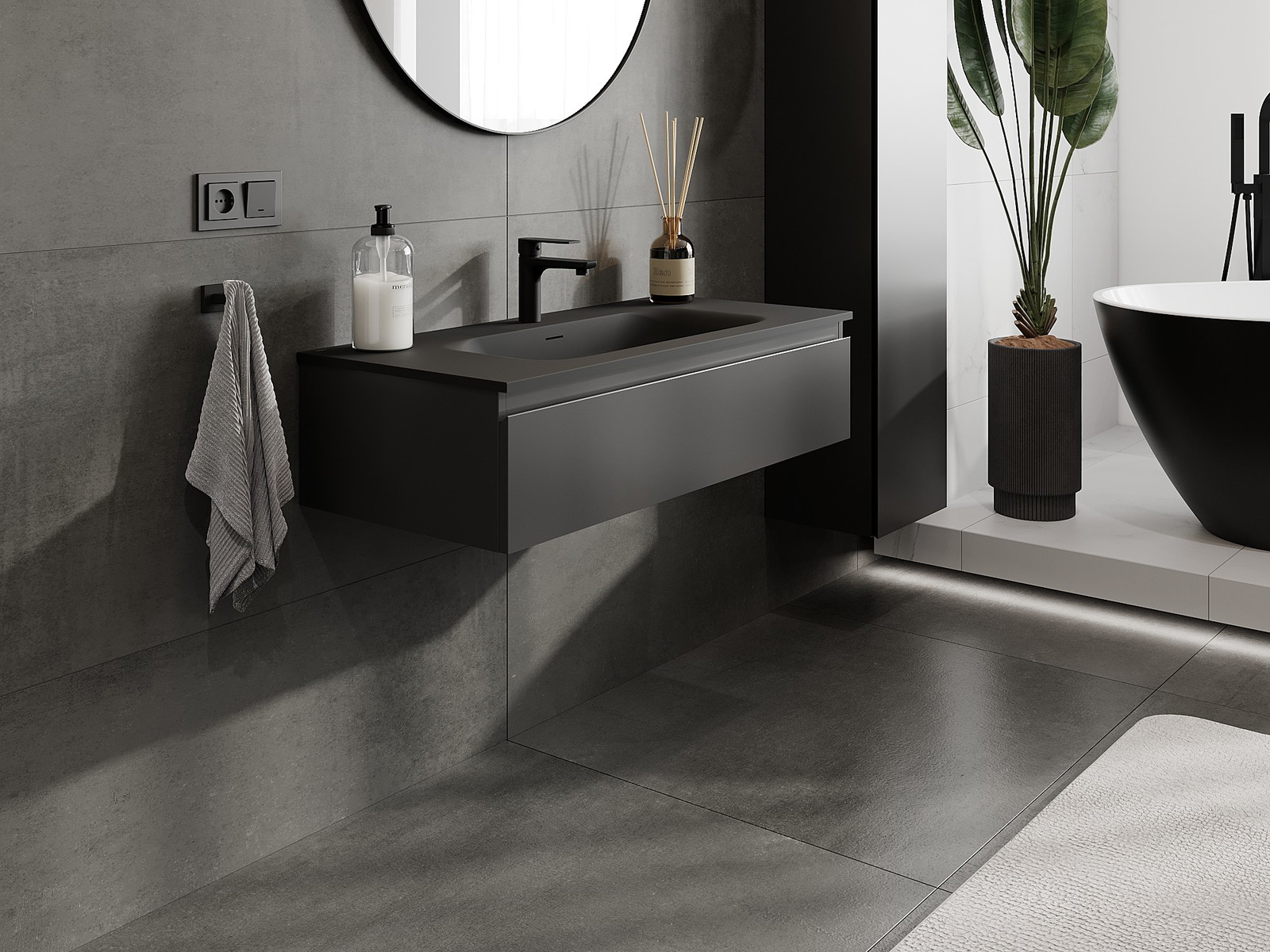 Unsere modularen Badezimmermöbel können in verschiedenen Farbkonfigurationen miteinander kombiniert werden, wodurch eine vollständige Personalisierung ermöglicht wird. Man kann sowohl das Aussehen als auch die Funktionen der einzelnen Elemente auswählen, was es erlaubt, die Möbel an eigene stilistische und funktionale Vorlieben anzupassen.