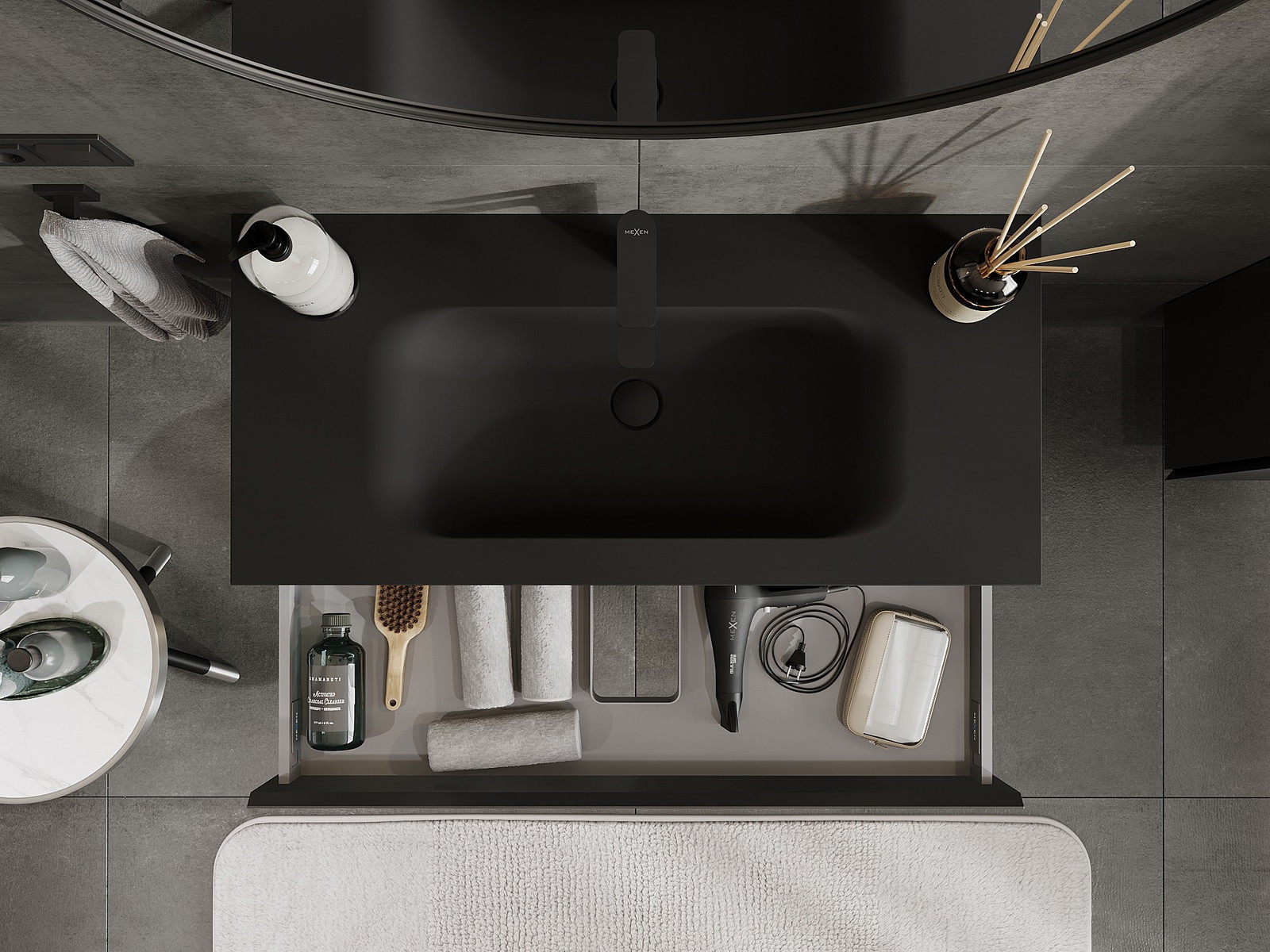 Mexen Orio Badezimmerschrank 100 cm mit Waschbecken Vela, 1 Schublade, schwarz matt - 91A10-10023-1-BF71-W23M71