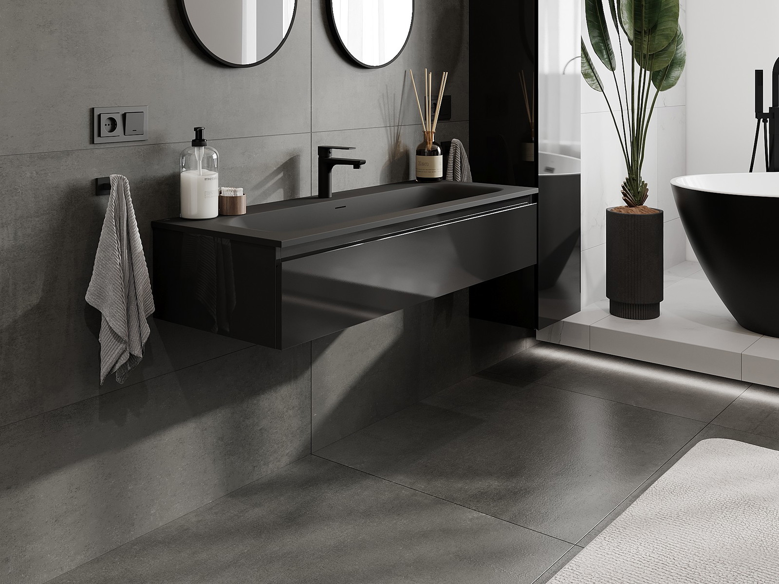 Unsere modularen Badezimmermöbel können in verschiedenen Farbkonfigurationen miteinander kombiniert werden, wodurch eine vollständige Personalisierung ermöglicht wird. Man kann sowohl das Aussehen als auch die Funktionen der einzelnen Elemente auswählen, was es erlaubt, die Möbel an eigene stilistische und funktionale Vorlieben anzupassen.