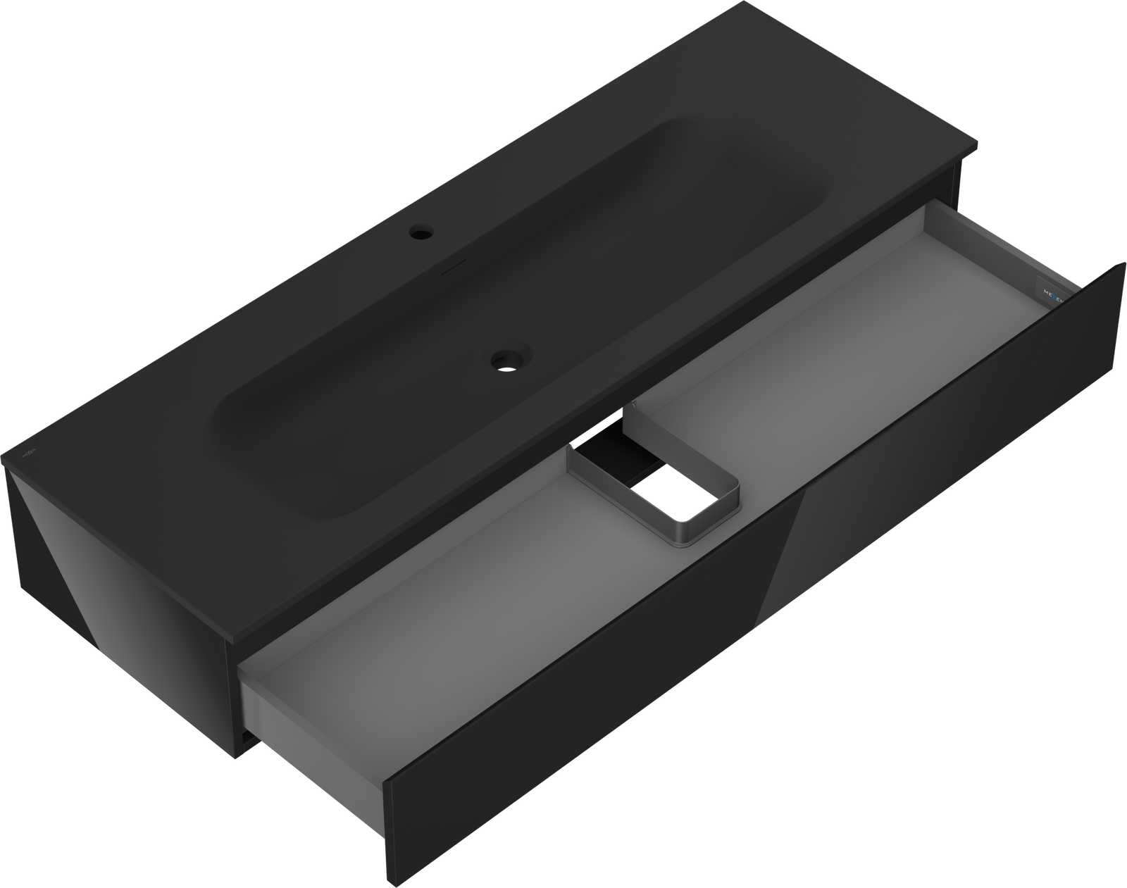 Der Ausschnitt in der Schublade ist so gestaltet, dass er den Siphon aufnehmen kann, der für Waschbeckeninstallationen erforderlich ist. Dadurch kann das Möbelstück voll funktionsfähig montiert werden, ohne auf den Platz in der Schublade zugunsten der Installation verzichten zu müssen.
