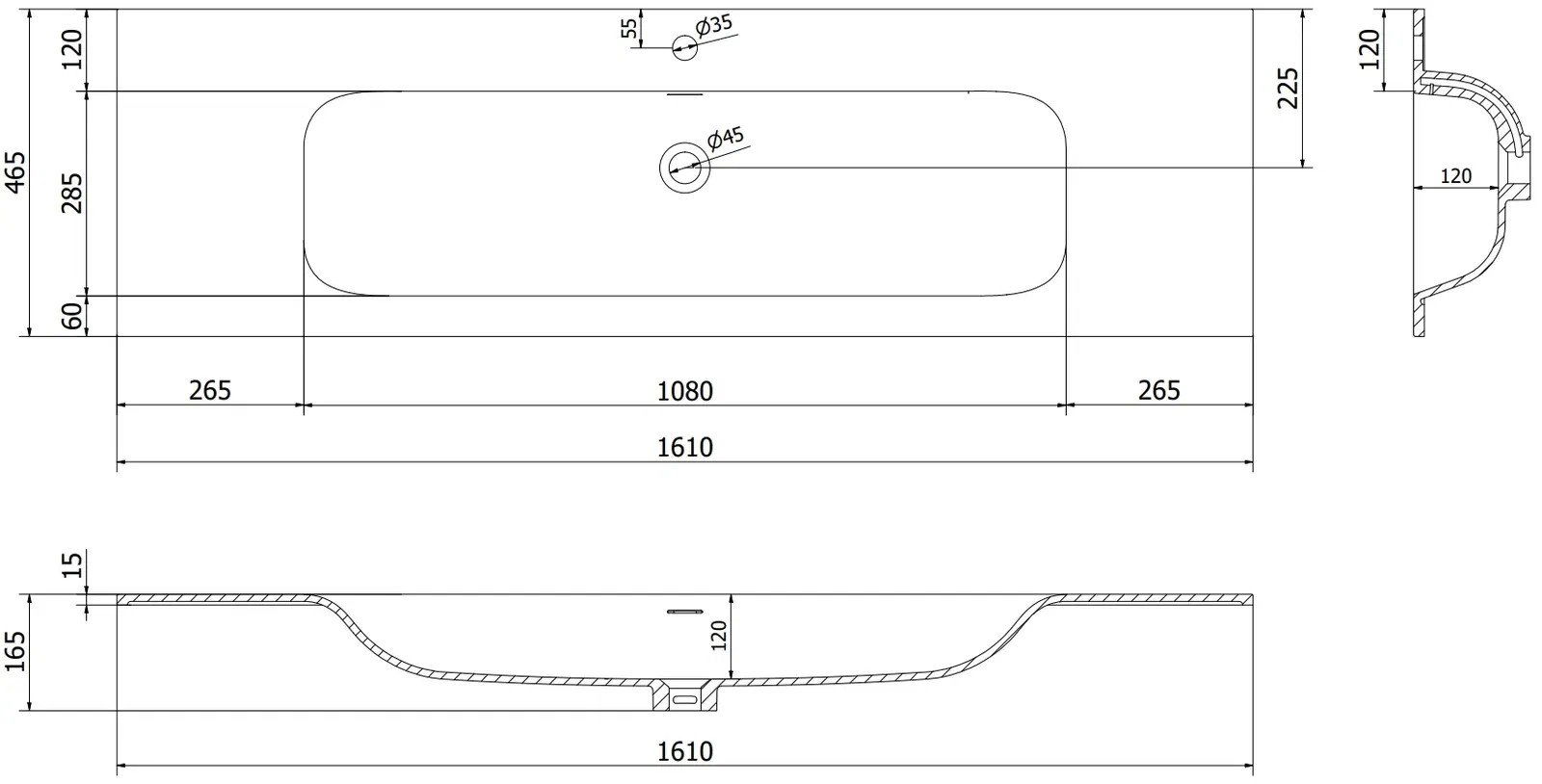 Abmessungen des Waschbeckens: