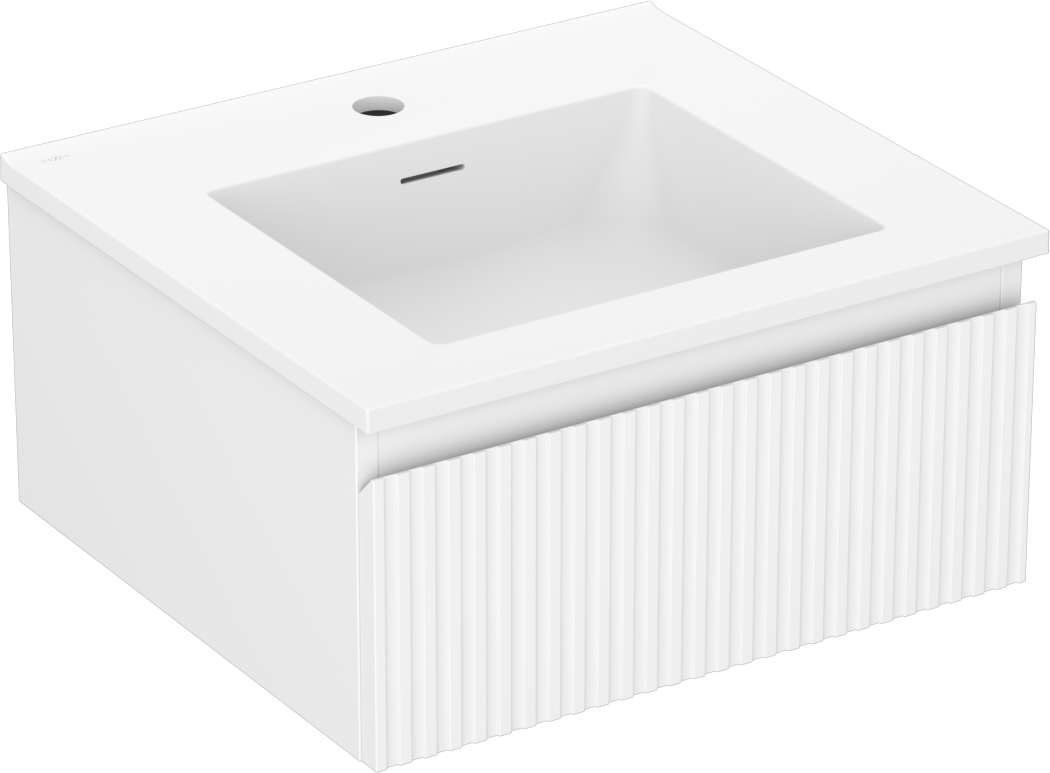 Mexen Rivel Badezimmerschrank 50 cm mit Waschbecken Otis, 1 Schublade, gerillt, weiß matt - 91A20-05023-1-BF01-W18M01