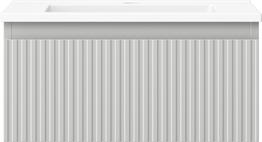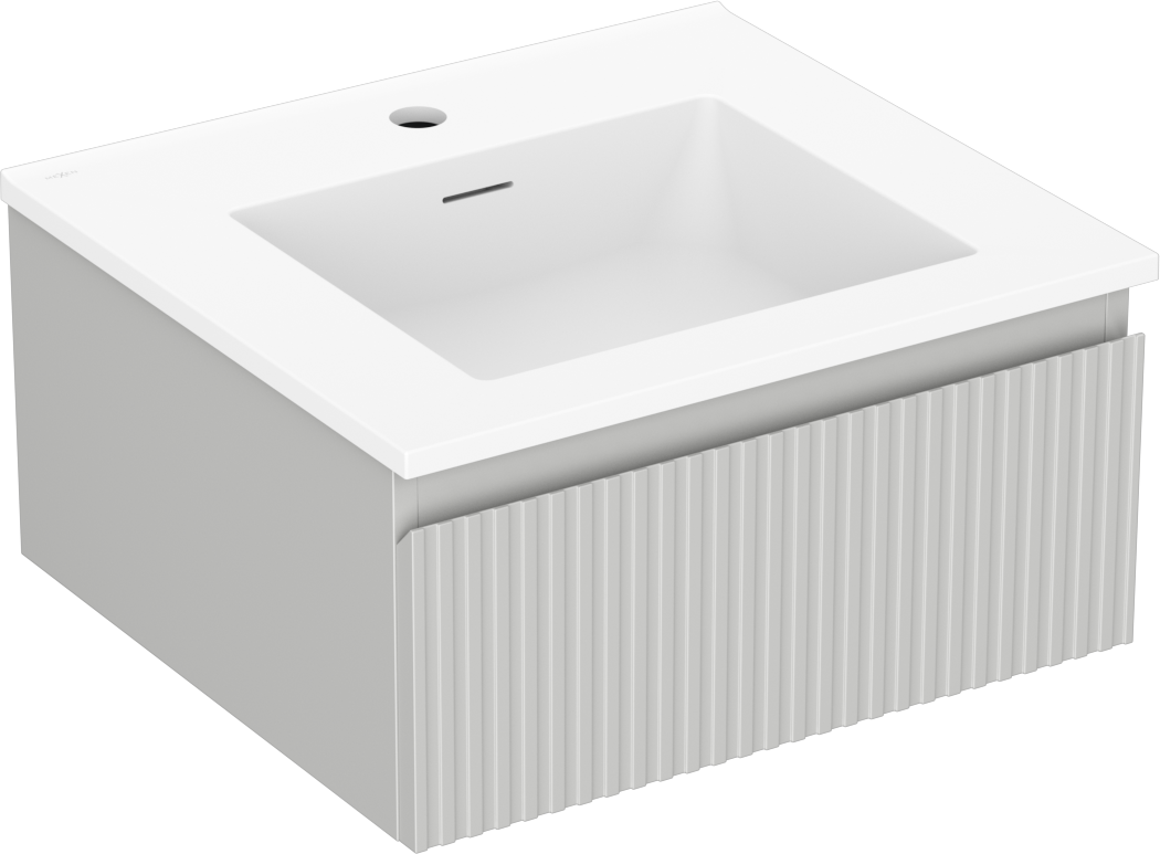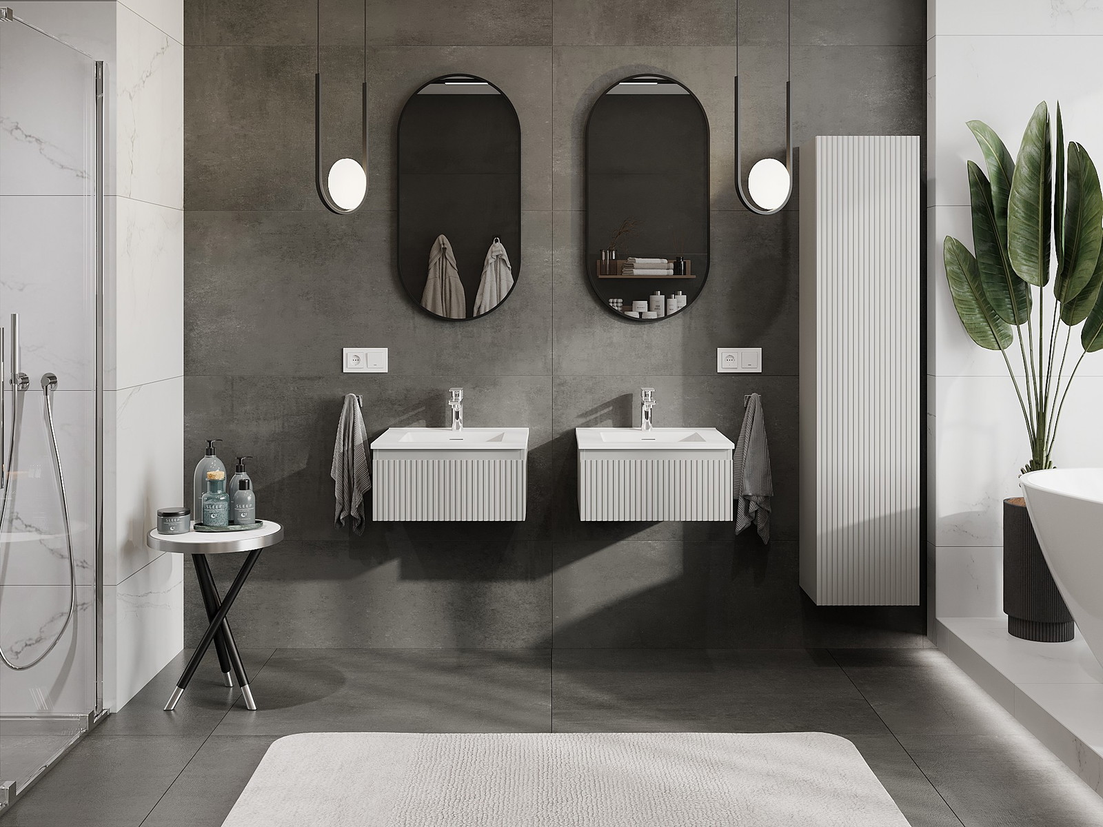 Mexen Rivel Badezimmerschrank 50 cm mit Waschbecken Otis, 1 Schublade, geriffelt, grau matt/weiß matt