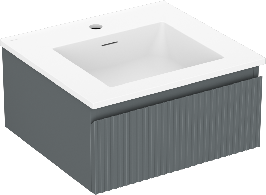 Mexen Rivel Badezimmerschrank 50 cm mit Waschbecken Otis, 1 Schublade, geriffelt, Graphit Matt/Weiß Matt