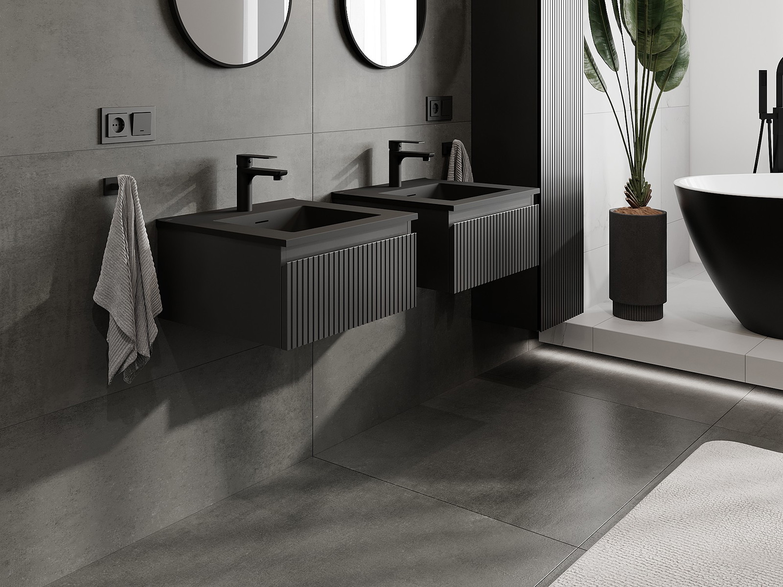 Mexen Rivel Badezimmerschrank 50 cm mit Waschbecken Otis, 1 Schublade, geriffelt, schwarz matt - 91A20-05023-1-BF71-W18M71