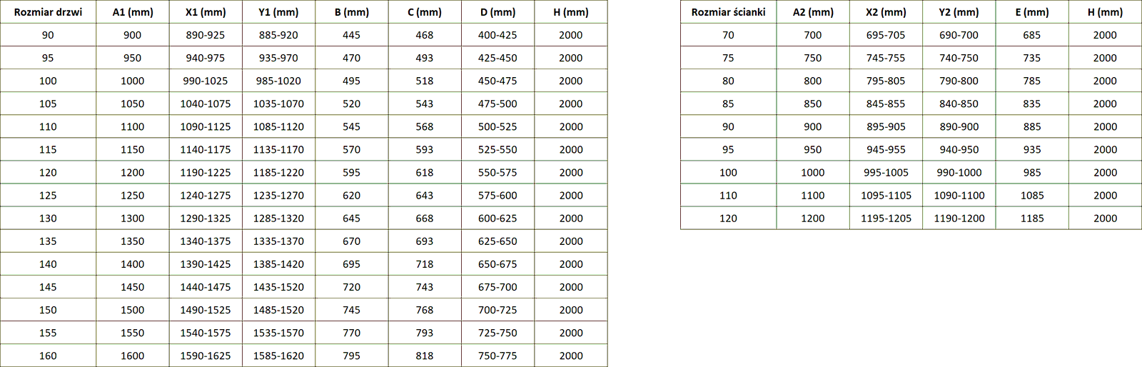 Größe: 115x120 cm (linke Tür 115 cm, Wand 120 cm)