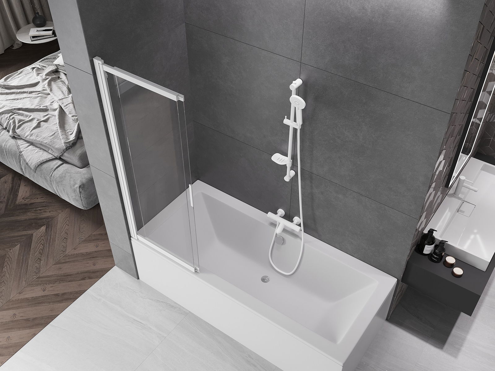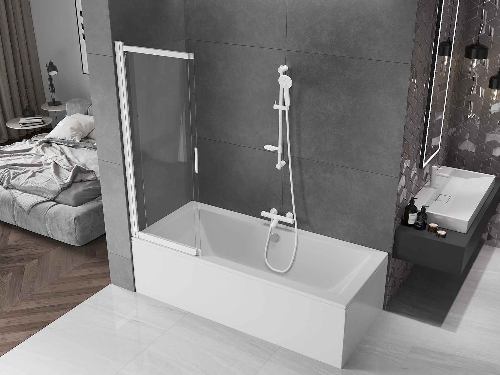 Effektiver Schutz vor dem Überlaufen von Wasser während des Badens. Die Duschwand verfügt über Dichtungen, die sich perfekt an die Glasscheibe und den Rand der Badewanne anpassen. Eine funktionale Lösung, die Sicherheit und einfache Reinigung gewährleistet.