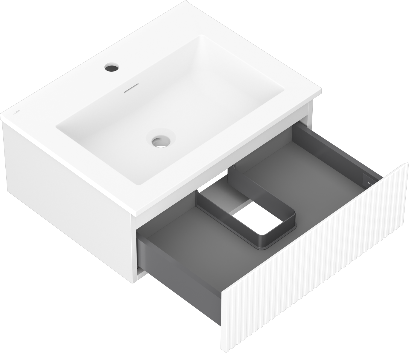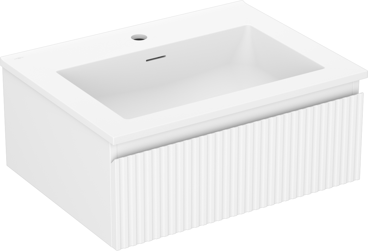 Mexen Rivel Badezimmerschrank 60 cm mit Waschbecken Otis, 1 Schublade, gerillt, mattweiß - 91A20-06023-1-BF01-W18M01