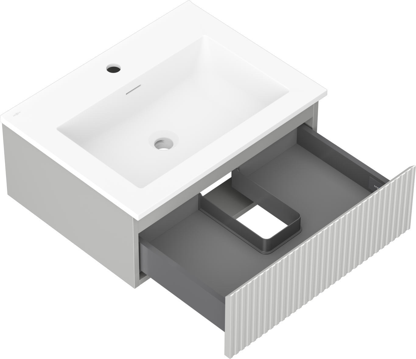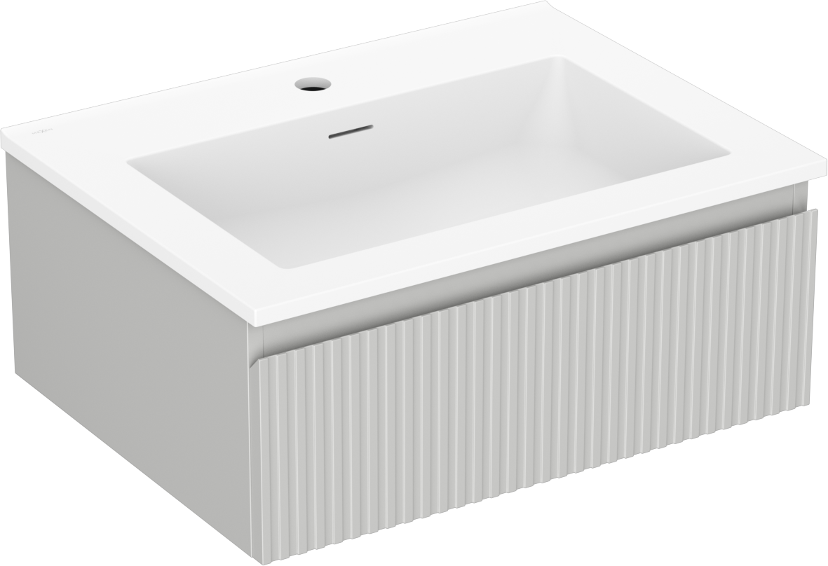 Mexen Rivel Badezimmerschrank 60 cm mit Waschbecken Otis, 1 Schublade, geriffelt, grau matt/weiß matt