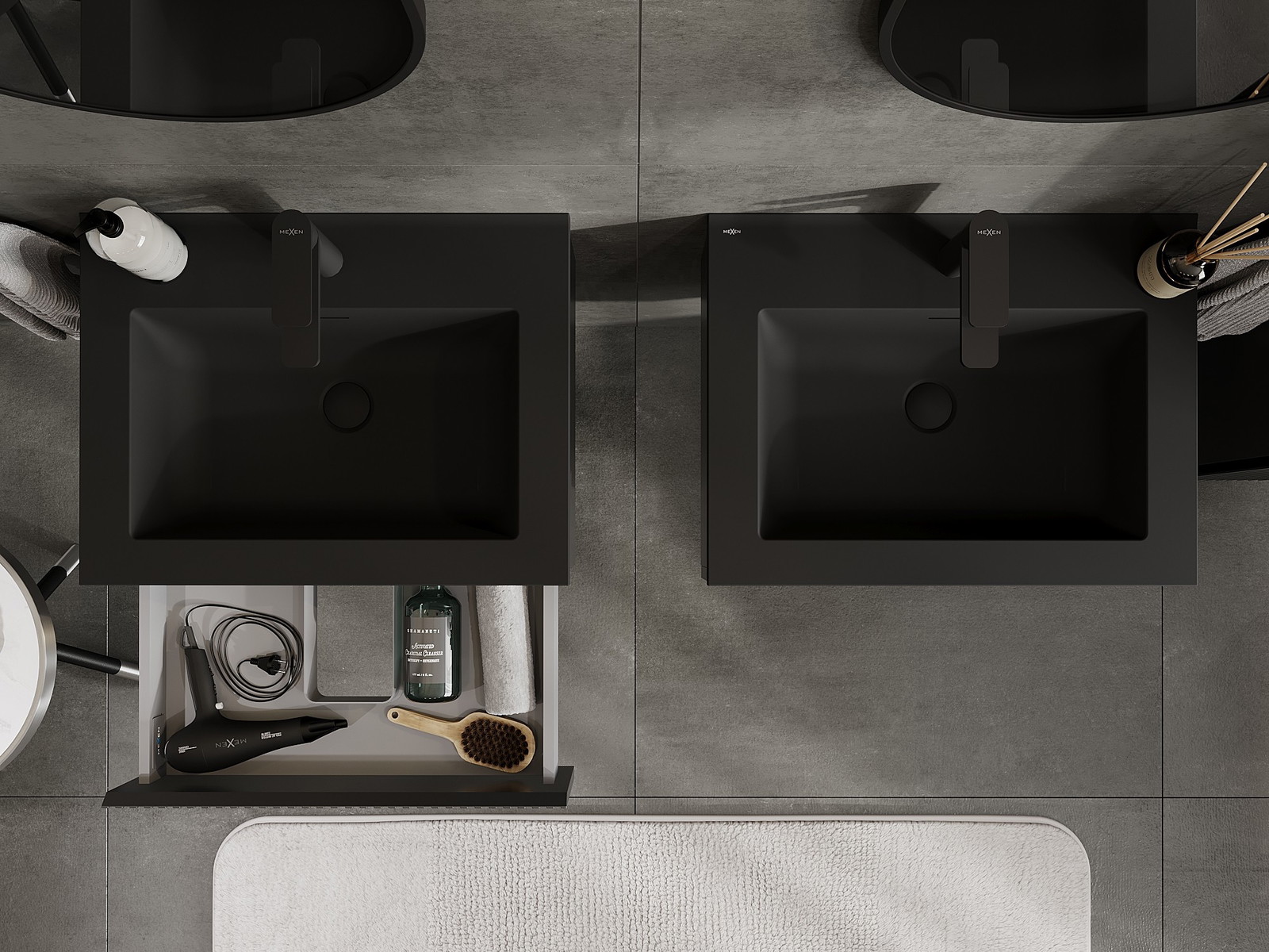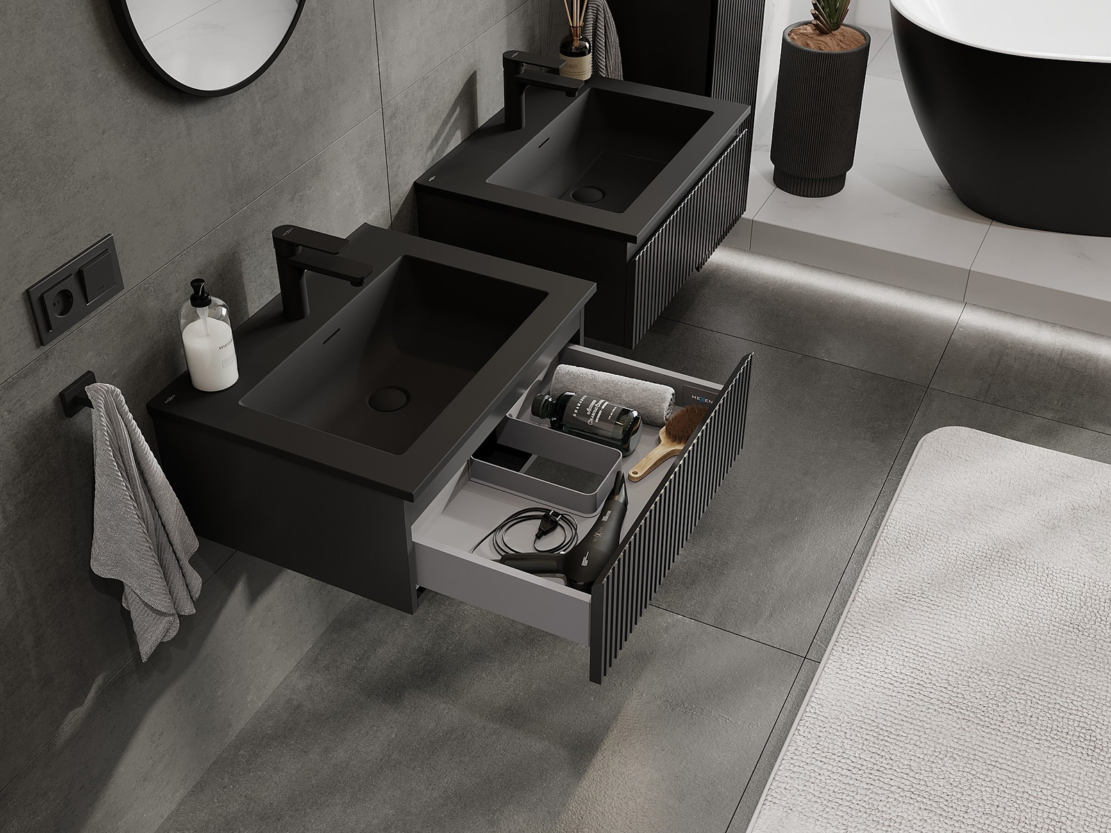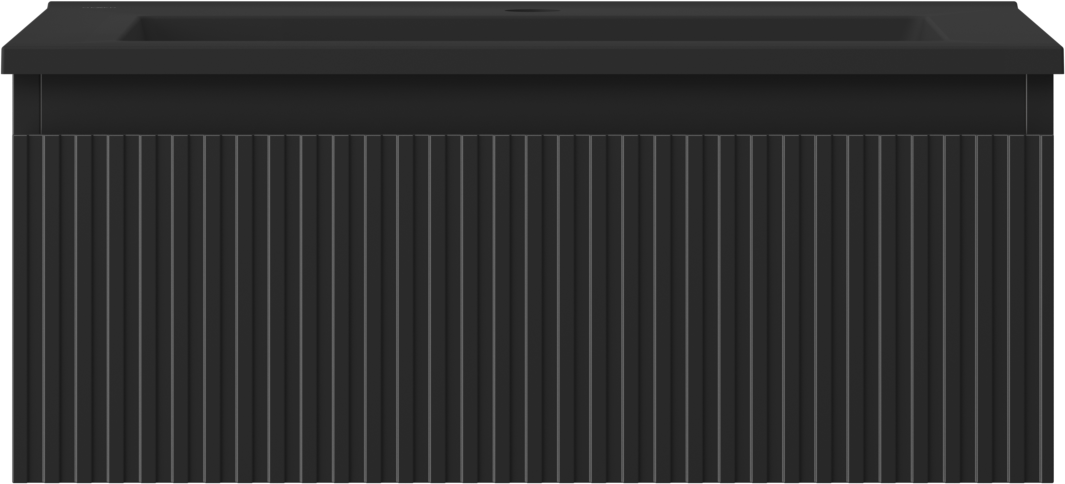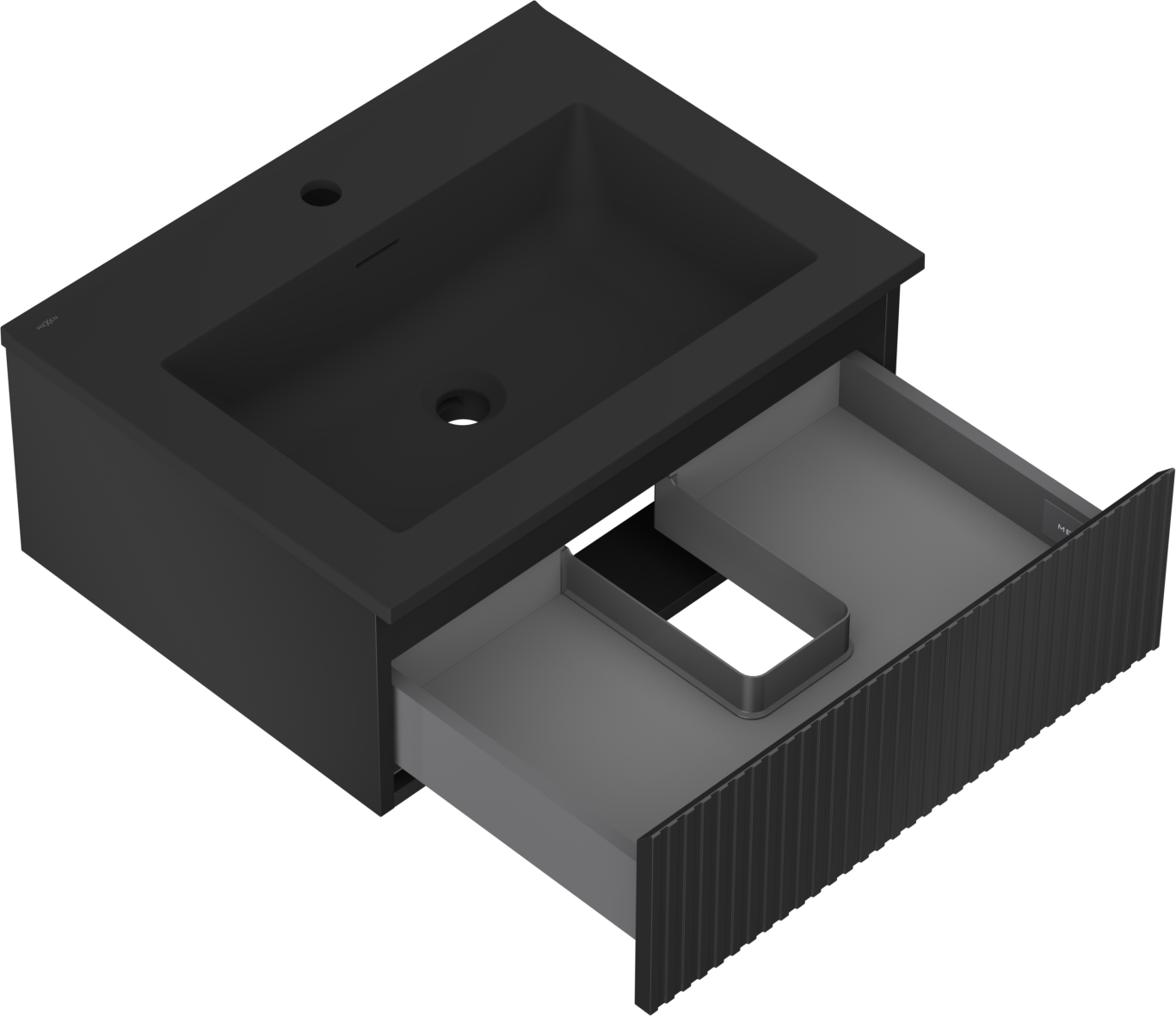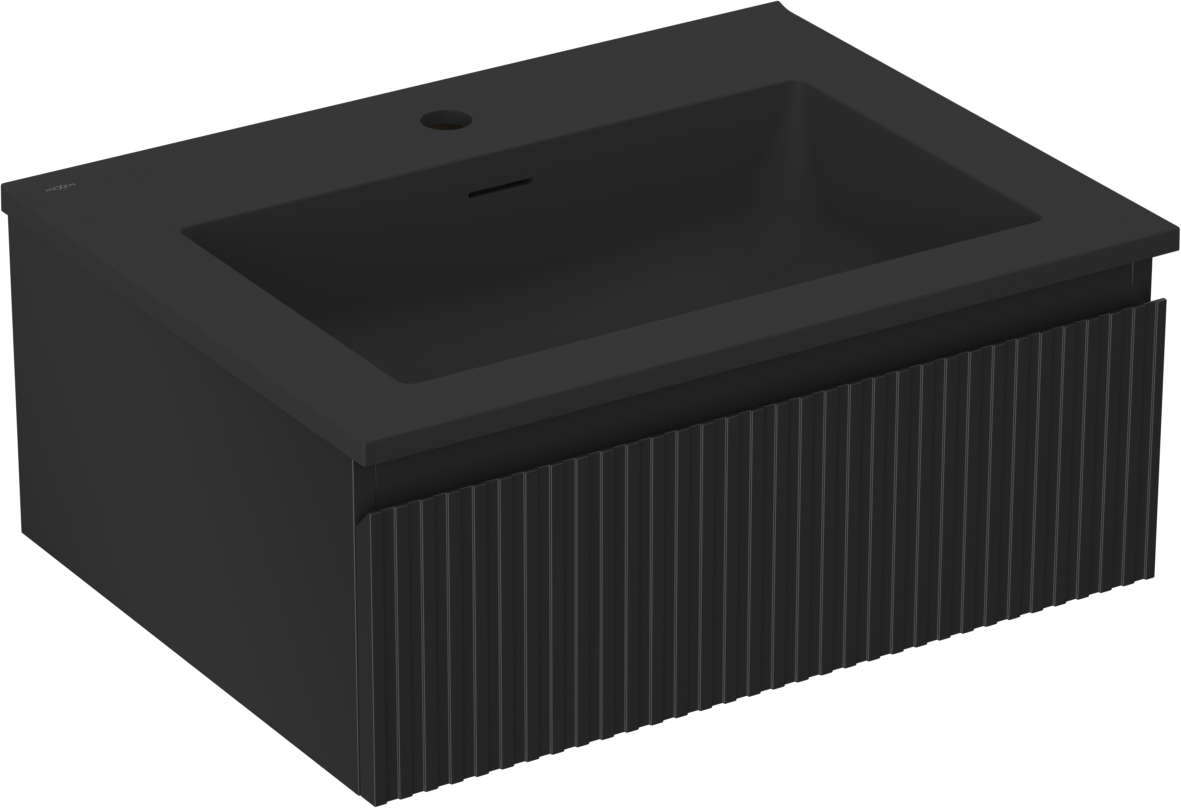 Mexen Rivel Badezimmer-Unterschrank 60 cm mit Waschbecken Otis, 1 Schublade, gerillt, schwarz matt - 91A20-06023-1-BF71-W18M71