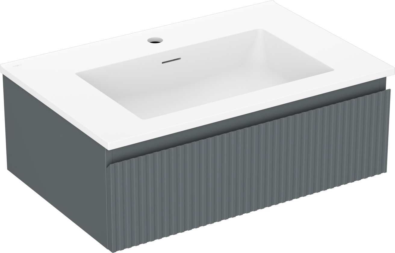 Mexen Rivel Badezimmerschrank 70 cm mit Waschbecken Otis, 1 Schublade, geriffelt, Graphit matt/Weiß matt