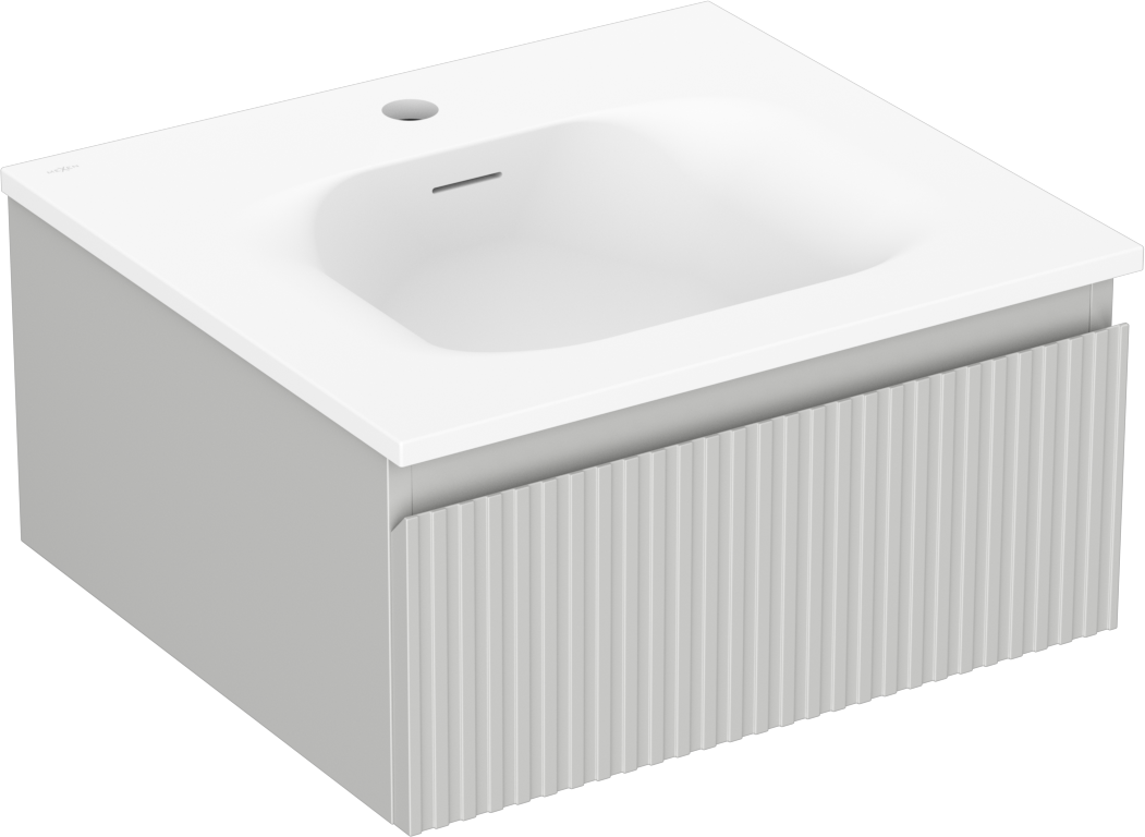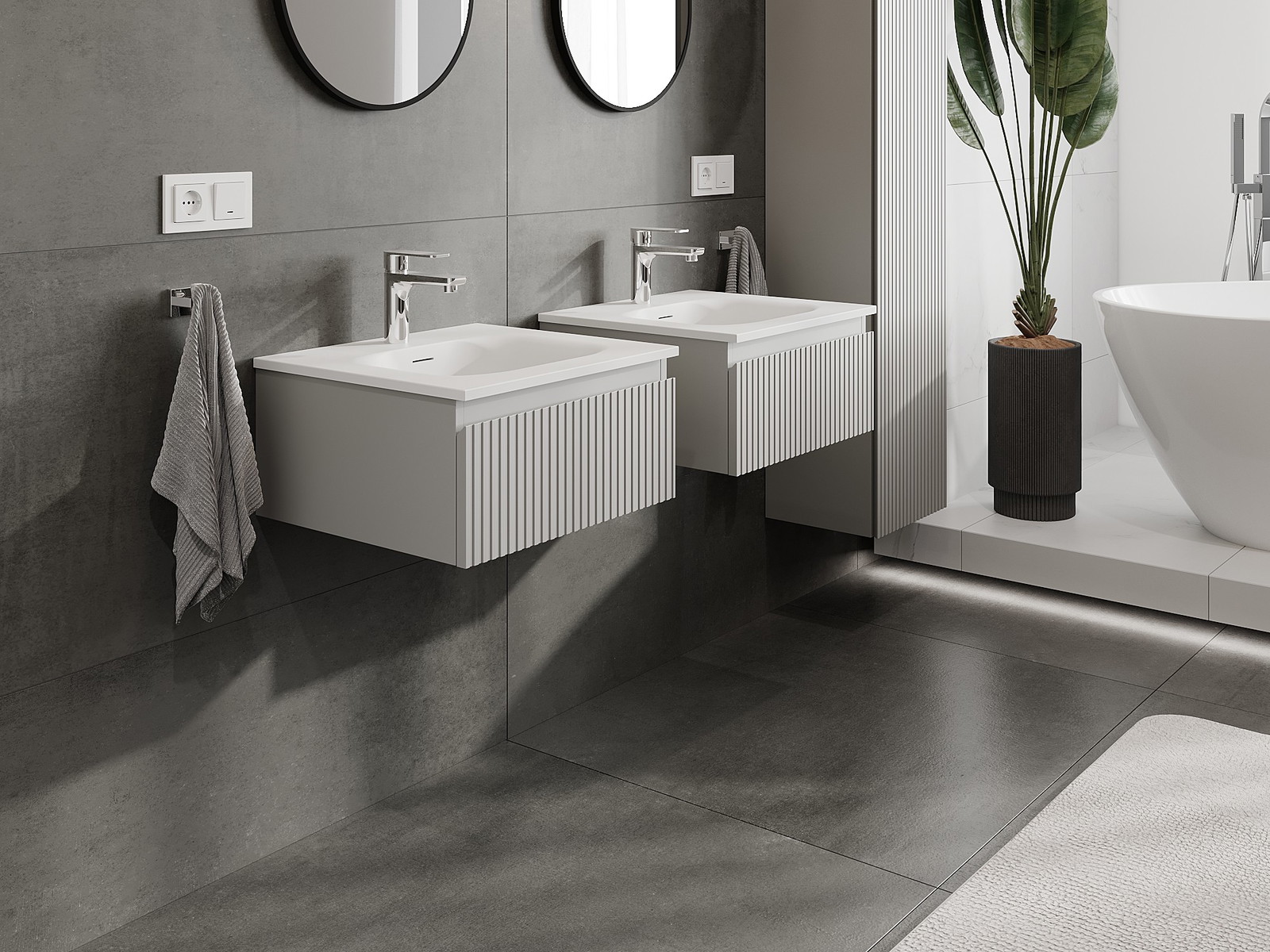 Mexen Rivel Badezimmerschrank 50 cm mit Waschbecken Vela, 1 Schublade, gerillt, grau matt/weiß matt - 91A20-05023-1-BF62-W23M01