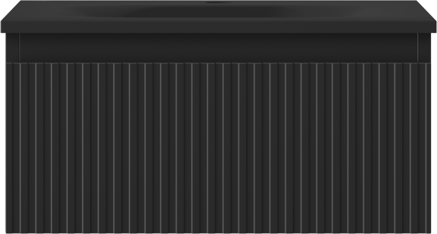 Mexen Rivel Badezimmerschrank 50 cm mit Waschbecken Vela, 1 Schublade, gerillt, schwarz matt - 91A20-05023-1-BF71-W23M71