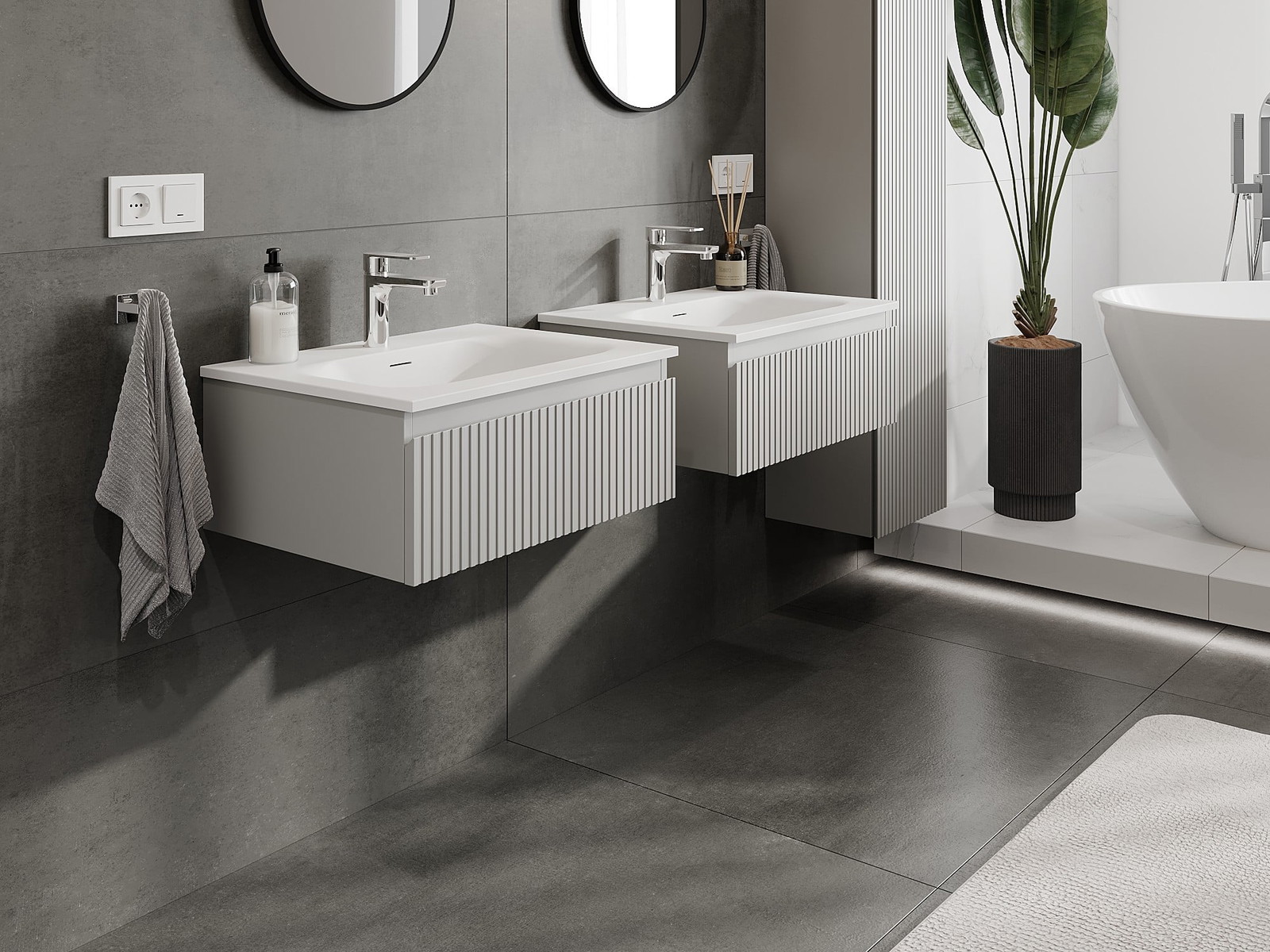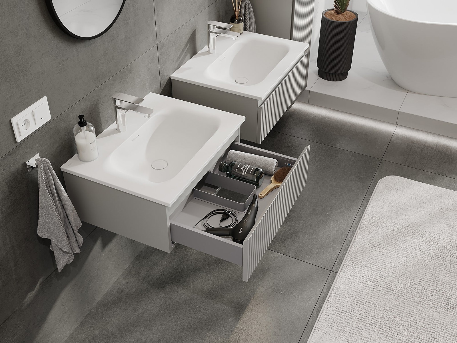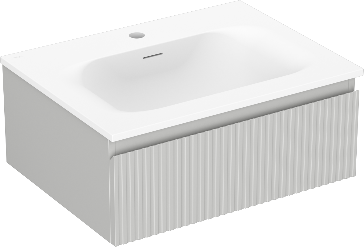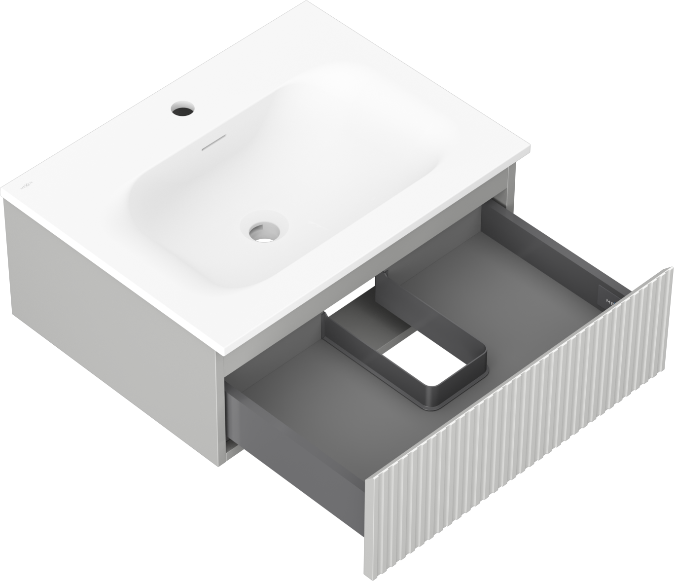 Mexen Rivel Badezimmerschrank 60 cm mit Waschbecken Vela, 1 Schublade, gerillt, grau matt/weiß matt - 91A20-06023-1-BF62-W23M01