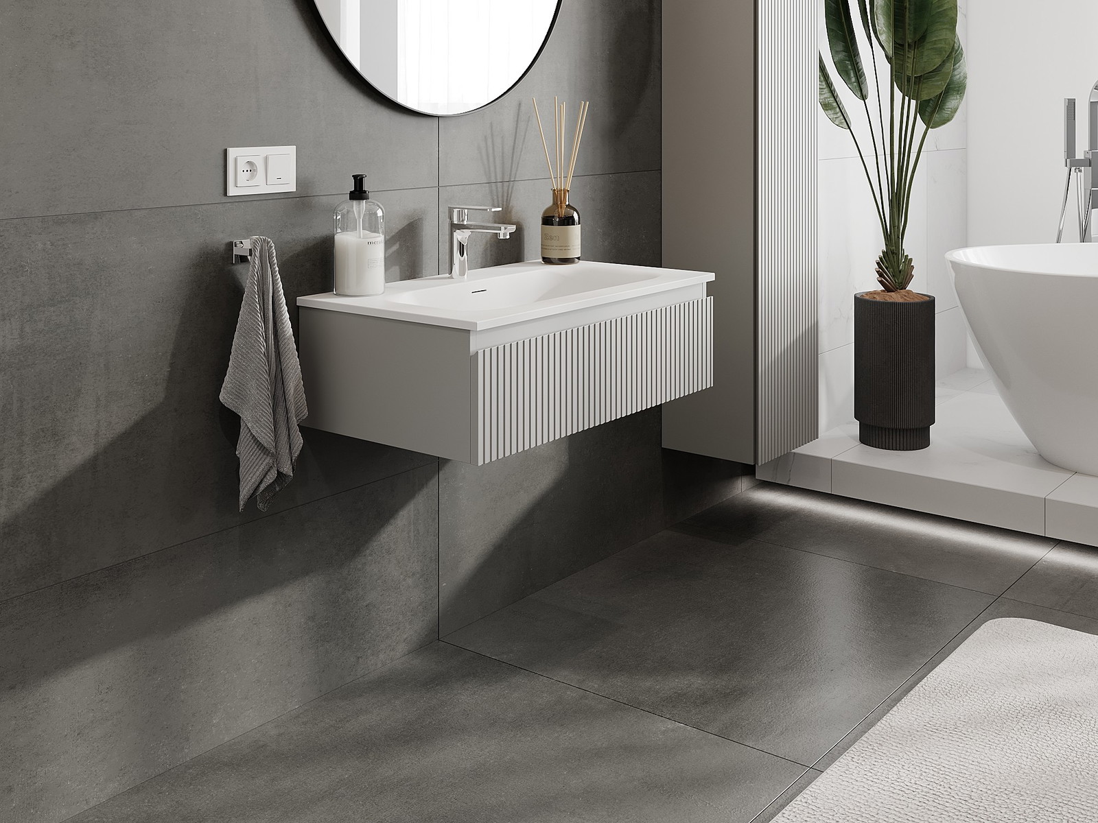 Mexen Rivel Badezimmerschrank 80 cm mit Waschbecken Vela, 1 Schublade, gerillt, grau matt/weiß matt - 91A20-08023-1-BF62-W23M01