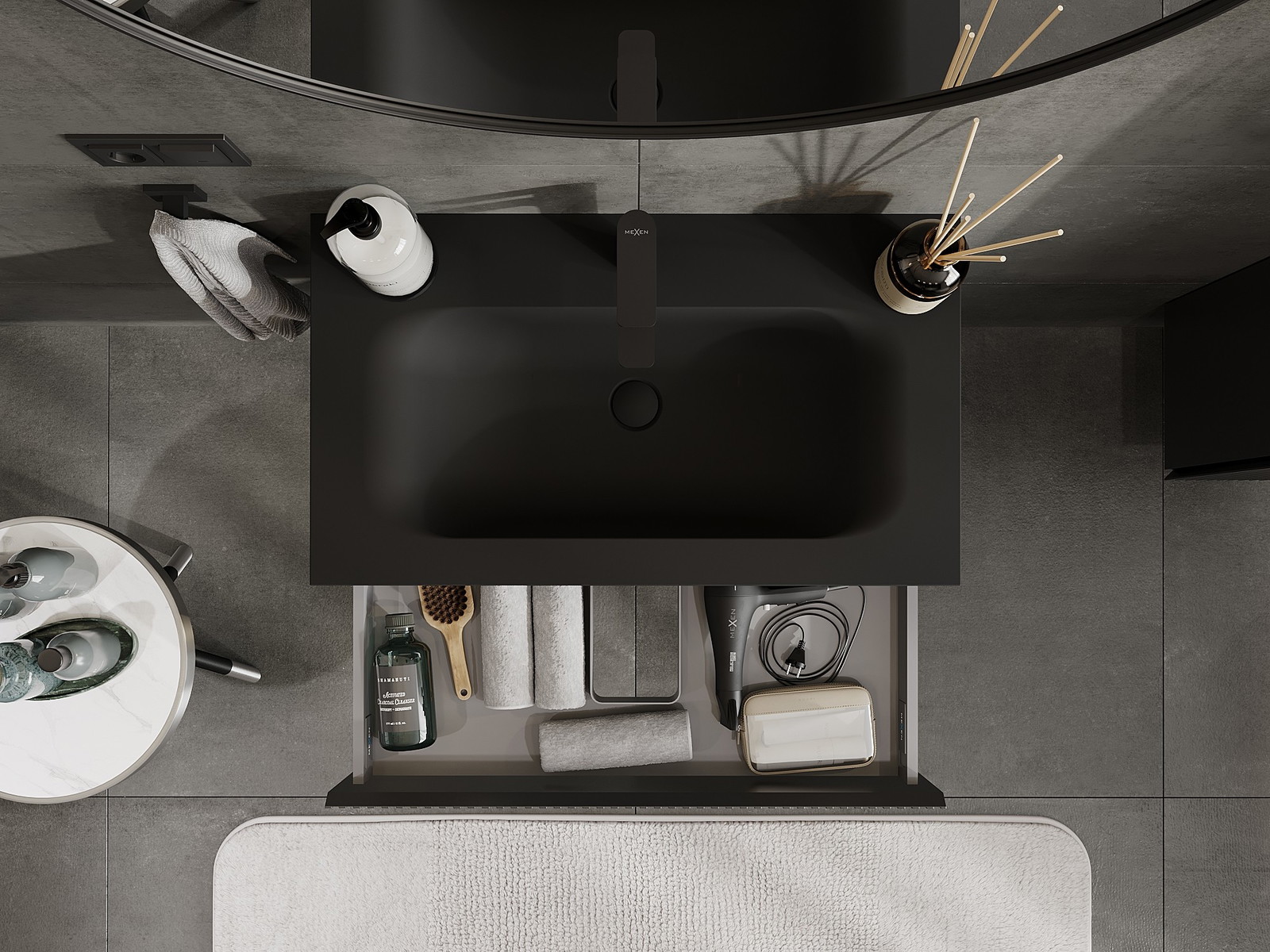 Mexen Rivel Badezimmermöbel 80 cm mit Waschtisch Vela, 1 Schublade, geriffelt, schwarz matt - 91A20-08023-1-BF71-W23M71