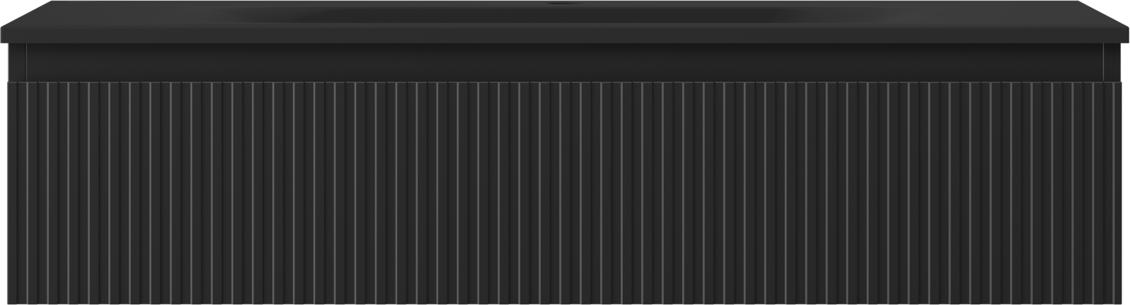 Mexen Rivel Badezimmerschrank 100 cm mit Waschbecken Vela, 1 Schublade, gerillt, schwarz matt - 91A20-10023-1-BF71-W23M71