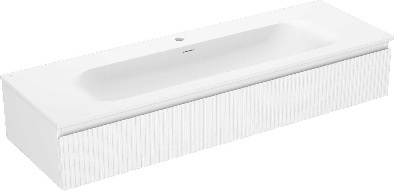 Mexen Rivel Badezimmerschrank 140 cm mit Waschbecken Vela, 1 Schublade, gerillt, weiß matt - 91A20-14023-1-BF01-W23M01