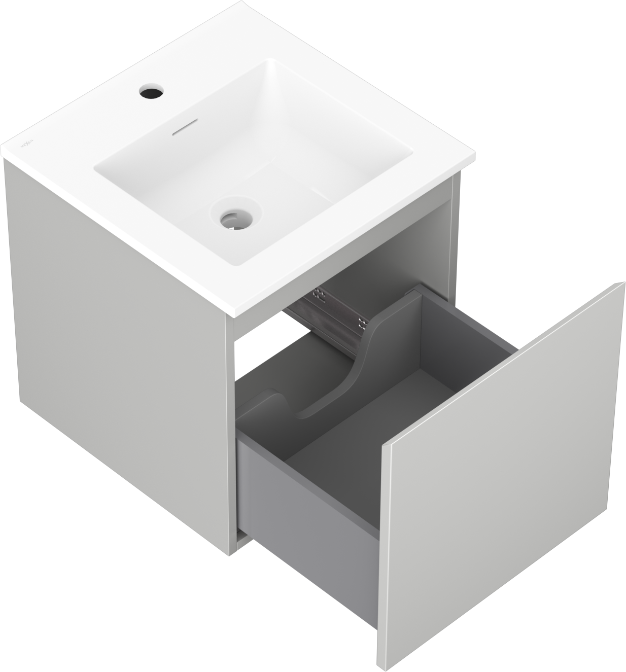 Mexen Orio Badezimmerschrank 45 cm mit Waschbecken Otis, 1 Schublade, grau matt/weiß matt - 91A10-04547-1-BF62-W18M01