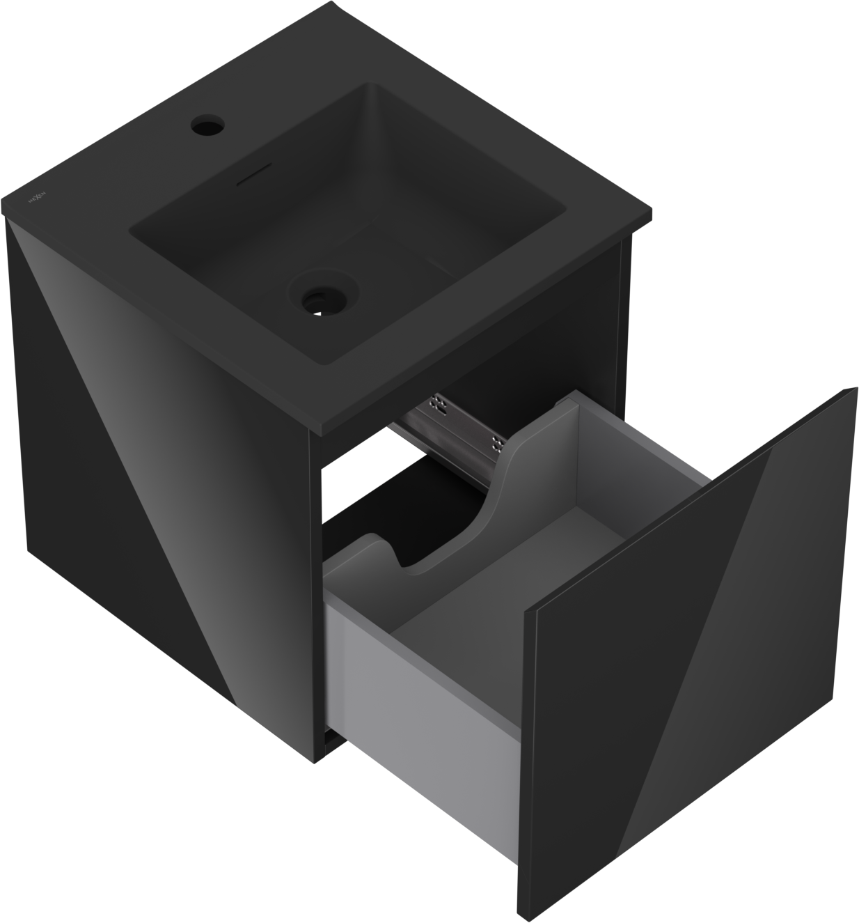 Mexen Orio Badezimmerschrank 45 cm mit Waschbecken Otis, 1 Schublade, schwarz glänzend/schwarz matt - 91A10-04547-1-BF70-W18M71
