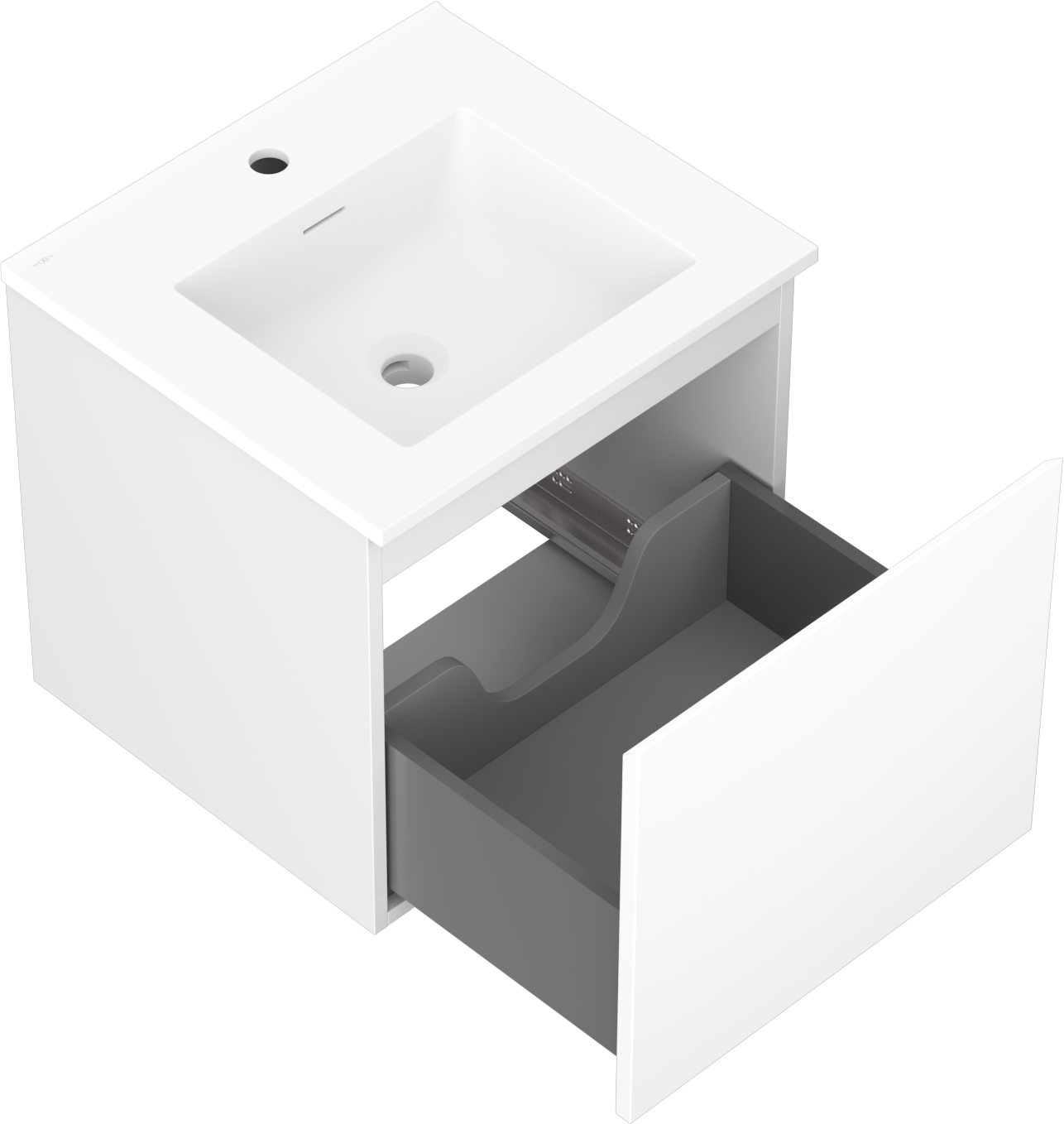 Mexen Orio Badezimmerschrank 50 cm mit Waschbecken Otis, 1 Schublade, Weiß Matt - 91A10-05047-1-BF01-W18M01
