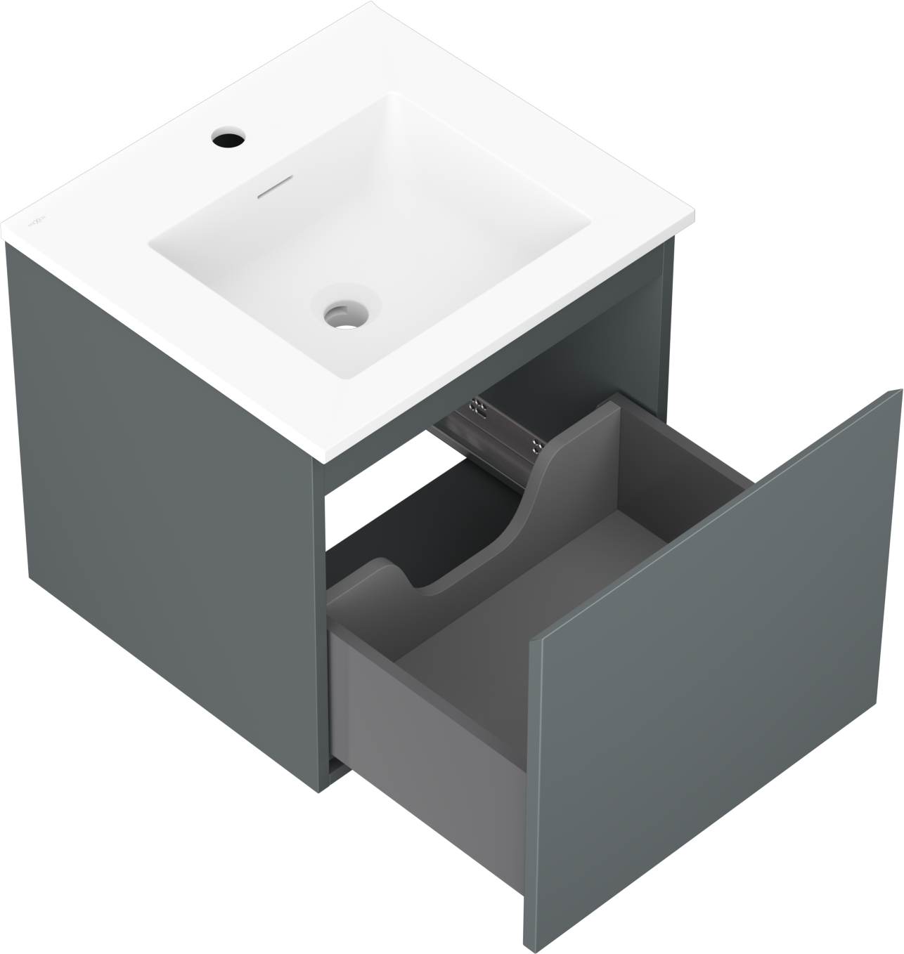 Mexen Orio Badezimmerschrank 50 cm mit Waschbecken Otis, 1 Schublade, Graphit matt/Weiß matt - 91A10-05047-1-BF66-W18M01