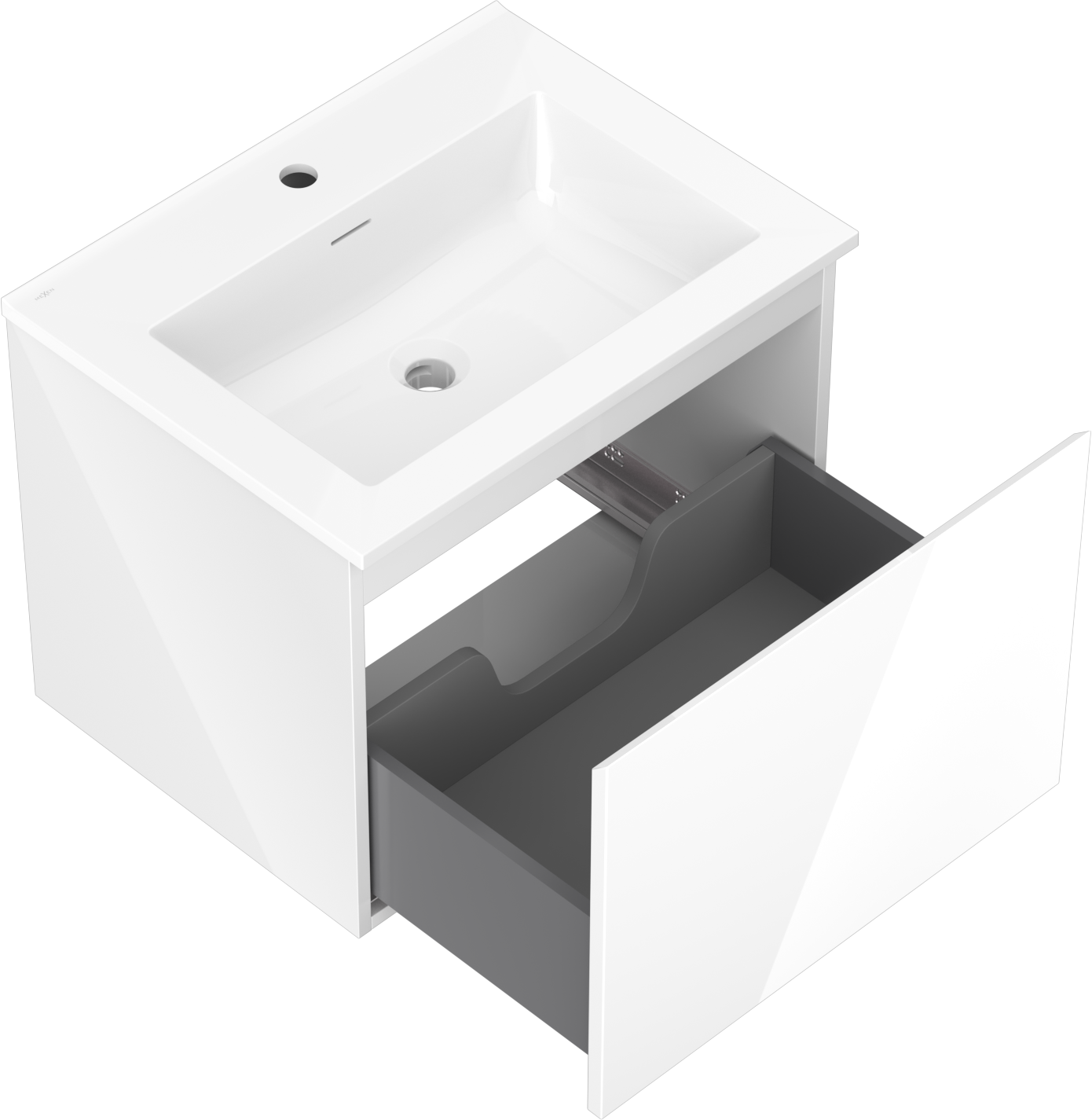 Mexen Orio Badschrank 60 cm mit Waschbecken Otis, 1 Schublade, weiß glänzend - 91A10-06047-1-BF00-W18M00