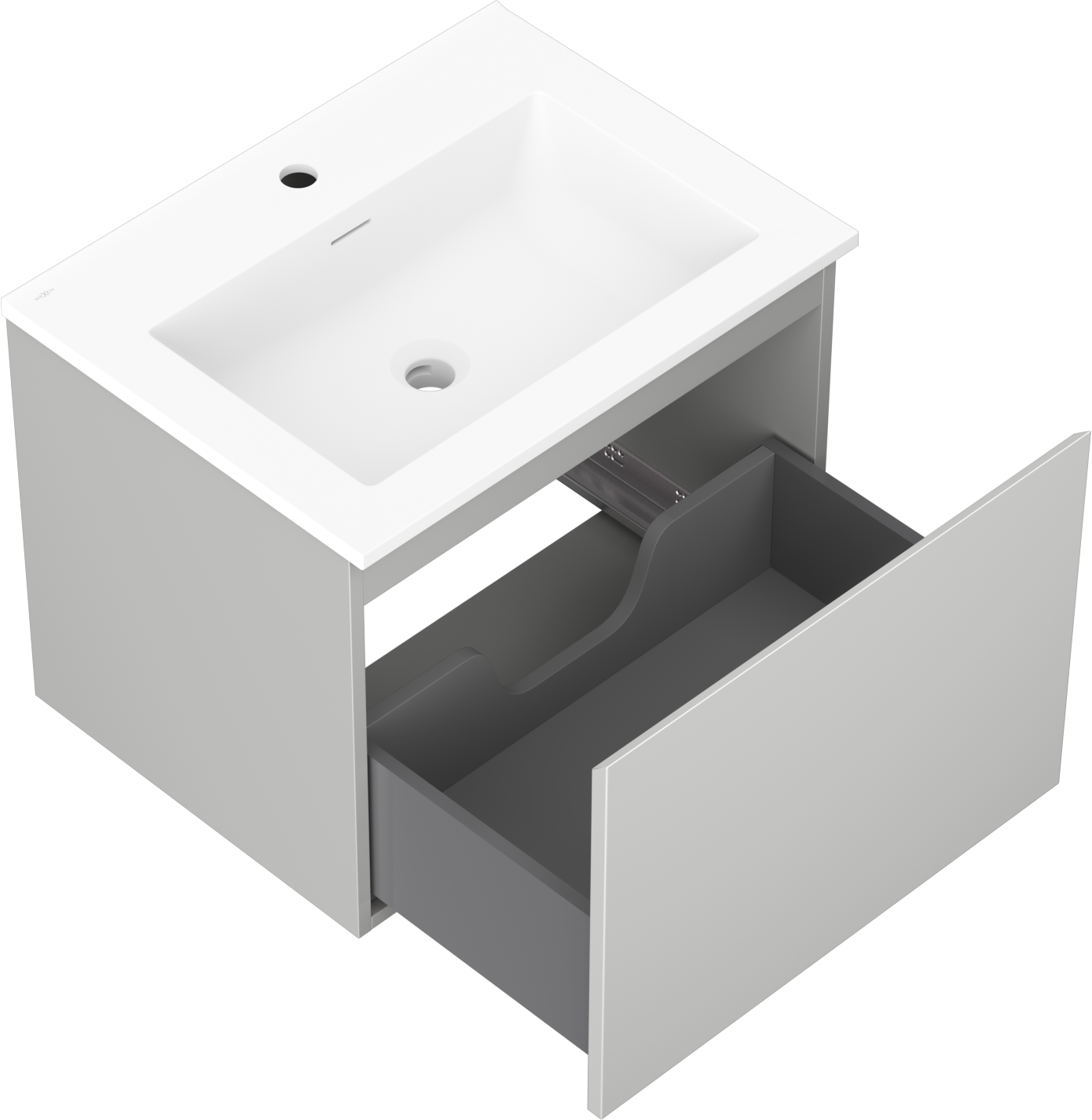 Mexen Orio Badezimmerschrank 60 cm mit Waschbecken Otis, 1 Schublade, grau matt/weiß matt - 91A10-06047-1-BF62-W18M01