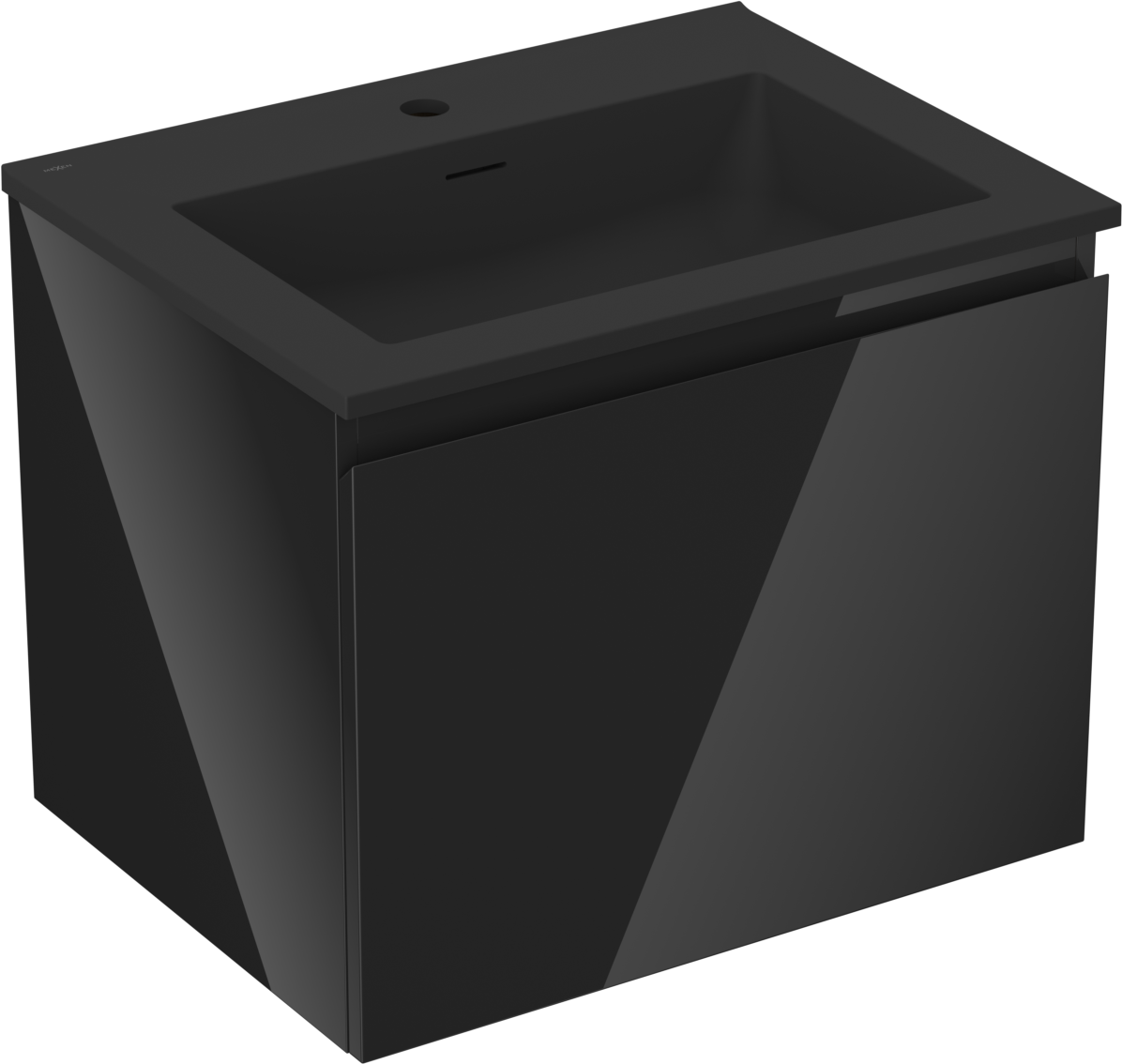 Mexen Orio Badezimmerschrank 60 cm mit Waschbecken Otis, 1 Schublade, schwarz glänzend/schwarz matt - 91A10-06047-1-BF70-W18M71