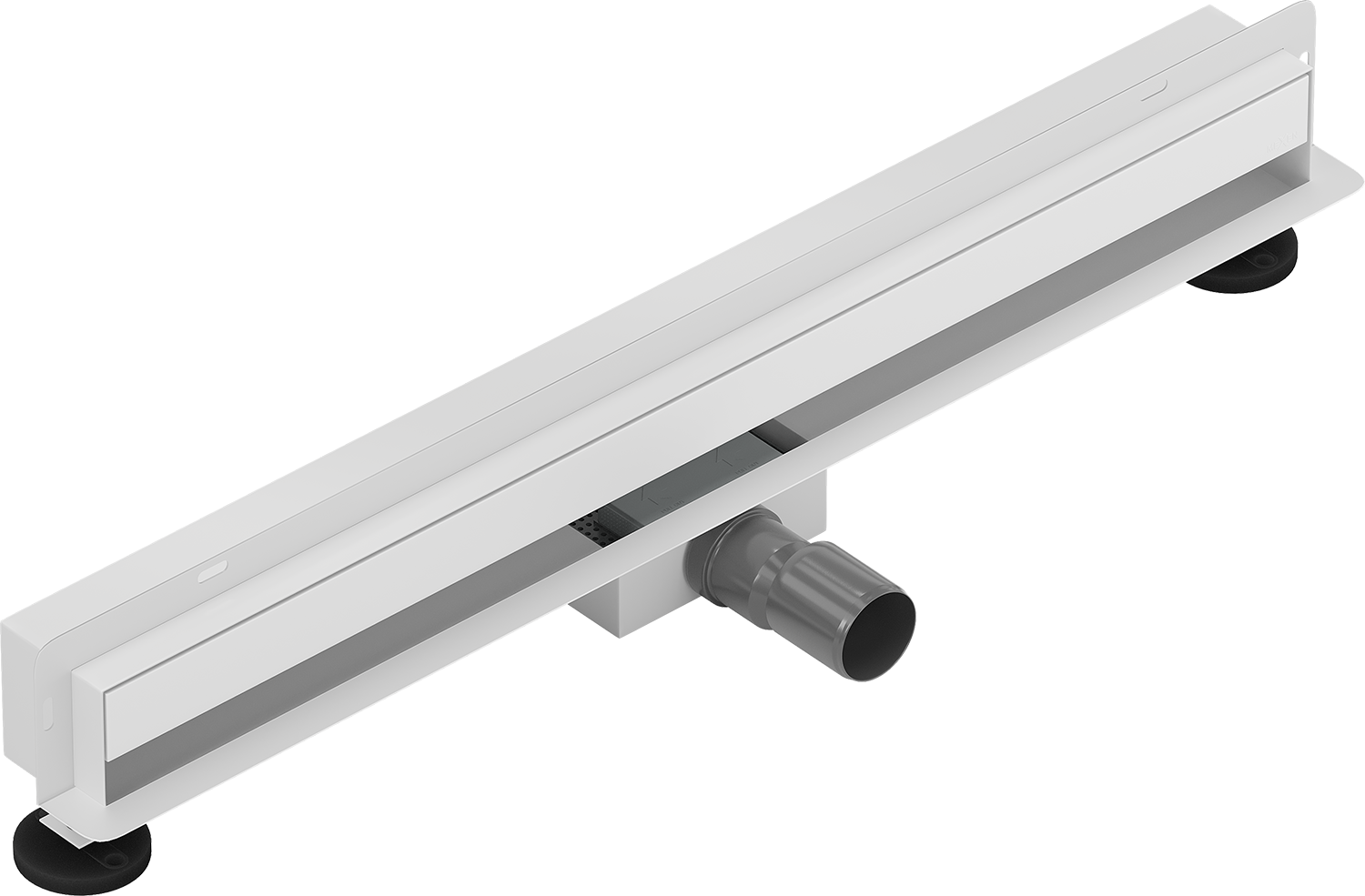 Der Ablauf ist mit verstellbaren Füßen ausgestattet, die es ermöglichen, die richtige Ablaufhöhe anzupassen und auf unebenen Oberflächen auszurichten. Auf diese Weise ist der Ablauf noch besser an die Bedingungen des jeweiligen Badezimmers angepasst.