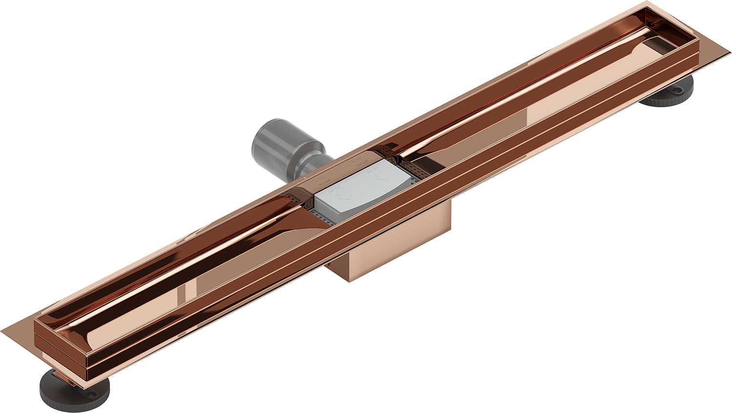 Der Ablauf ist mit verstellbaren Füßen ausgestattet, die es ermöglichen, die richtige Ablaufhöhe anzupassen und auf unebenen Oberflächen auszurichten. Auf diese Weise ist der Ablauf noch besser an die Bedingungen des jeweiligen Badezimmers angepasst.