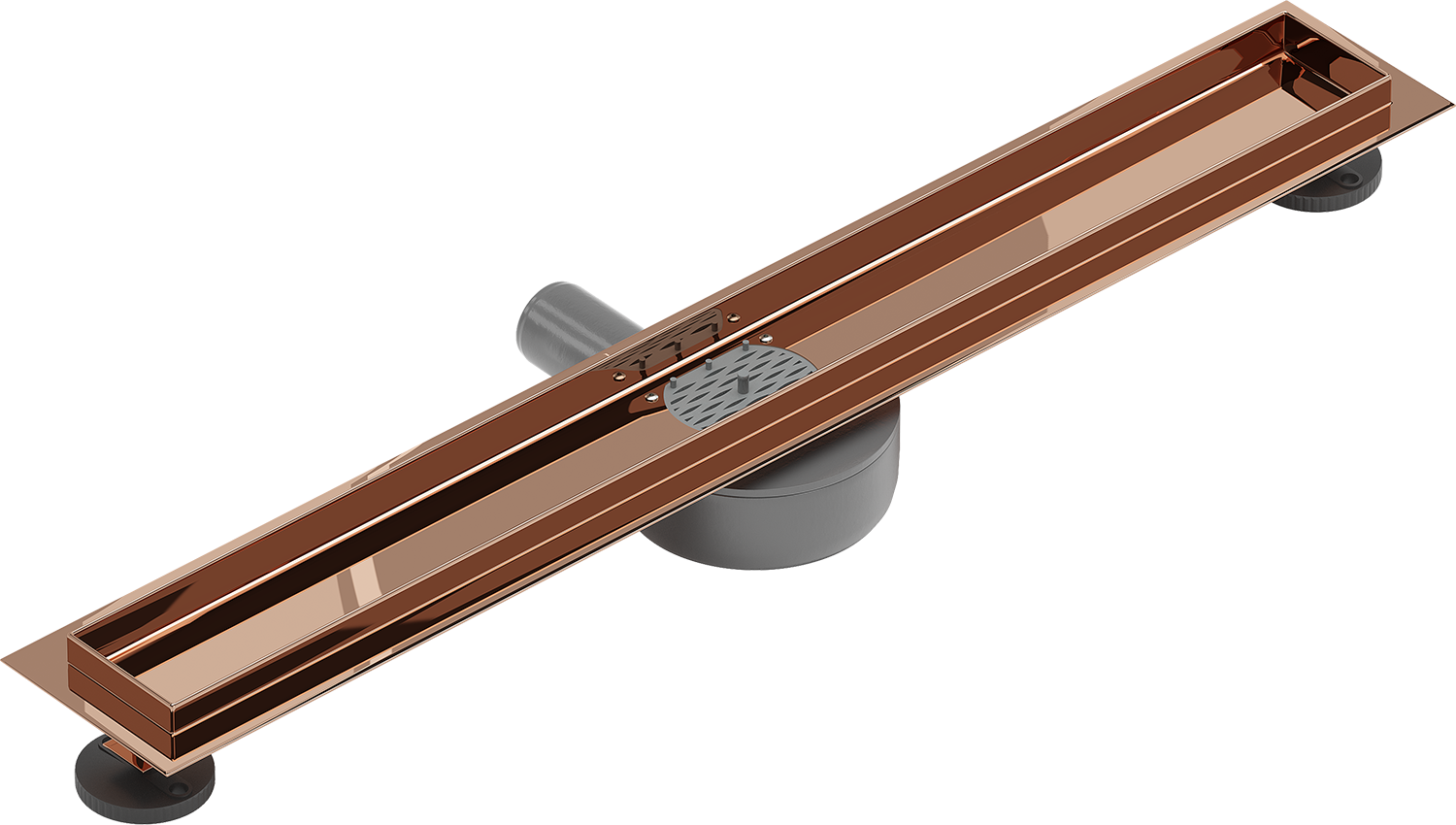 Der Ablauf ist mit verstellbaren Füßen ausgestattet, die es ermöglichen, die richtige Ablaufhöhe anzupassen und auf unebenen Oberflächen auszurichten. Auf diese Weise ist der Ablauf noch besser an die Bedingungen des jeweiligen Badezimmers angepasst.
