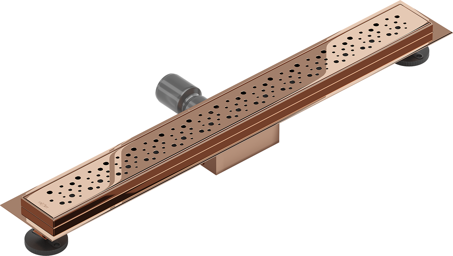 Der Ablauf ist mit verstellbaren Füßen ausgestattet, die es ermöglichen, die richtige Ablaufhöhe anzupassen und auf unebenen Oberflächen auszurichten. Auf diese Weise ist der Ablauf noch besser an die Bedingungen des jeweiligen Badezimmers angepasst.