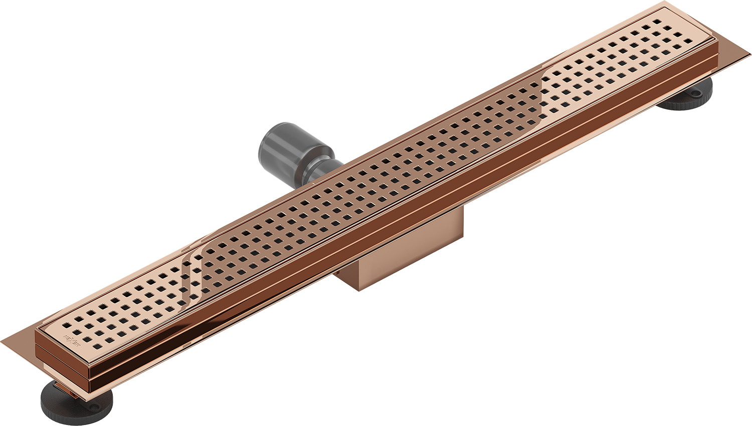 Der Ablauf ist mit verstellbaren Füßen ausgestattet, die es ermöglichen, die richtige Ablaufhöhe anzupassen und auf unebenen Oberflächen auszurichten. Auf diese Weise ist der Ablauf noch besser an die Bedingungen des jeweiligen Badezimmers angepasst.
