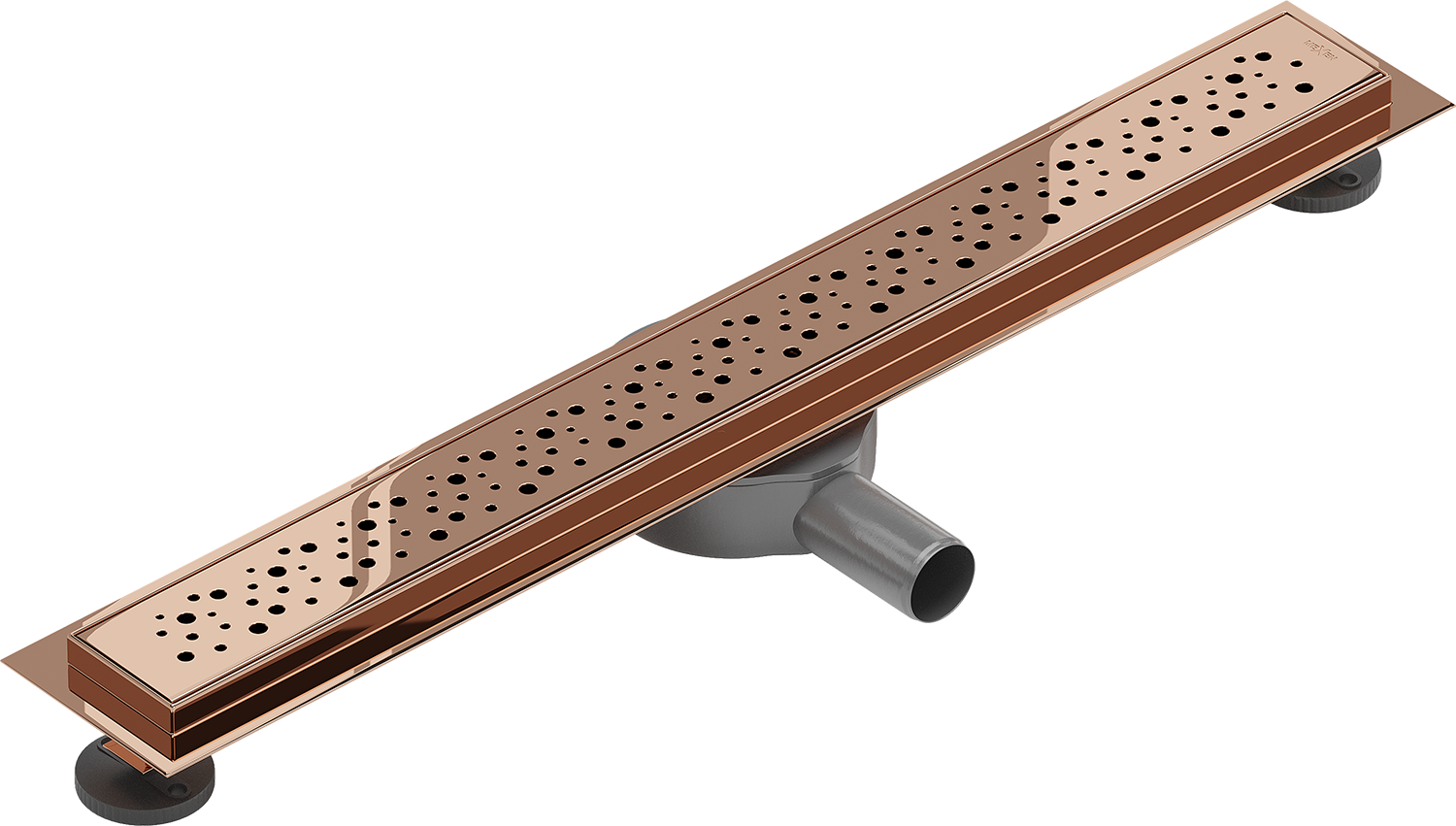 Der Ablauf ist mit verstellbaren Füßen ausgestattet, die es ermöglichen, die richtige Ablaufhöhe anzupassen und auf unebenen Oberflächen auszurichten. Auf diese Weise ist der Ablauf noch besser an die Bedingungen des jeweiligen Badezimmers angepasst.
