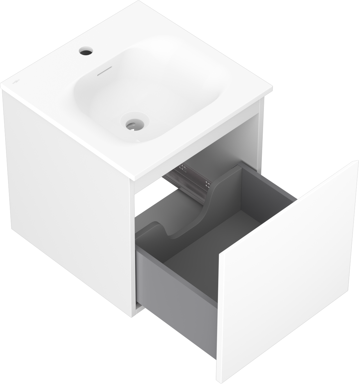 Der Ausschnitt in der Schublade ist für die Aufnahme eines Siphons ausgelegt, der für die Installation von Waschbecken unerlässlich ist. Dadurch kann das Möbelstück voll funktionsfähig installiert werden, ohne dass für die Installation Schubladenplatz geopfert werden muss.