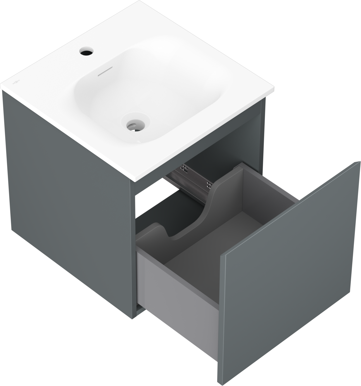 Mexen Orio Badezimmerschrank 45 cm mit Waschbecken Vela, 1 Schublade, Graphit Matt/Weiß Matt - 91A10-04547-1-BF66-W23M01