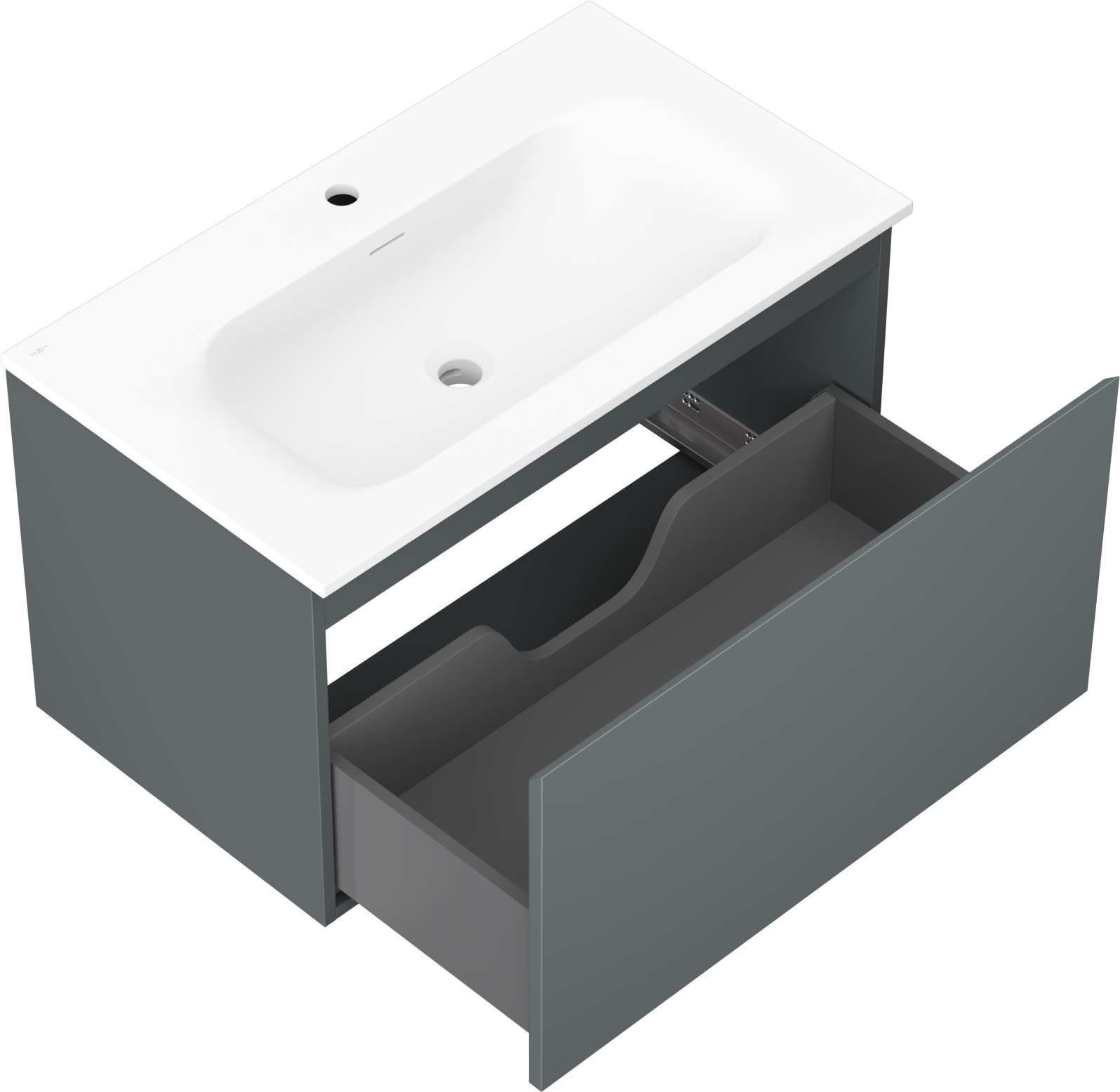 Mexen Orio Badezimmerschrank 80 cm mit Waschbecken Vela, 1 Schublade, Graphit matt/weiß matt - 91A10-08047-1-BF66-W23M01