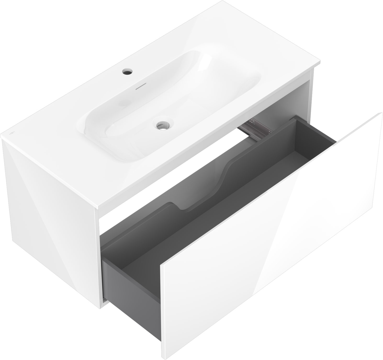 Mexen Orio Badezimmerschrank 100 cm mit Waschbecken Vela, 1 Schublade, weiß glänzend - 91A10-10047-1-BF00-W23M00